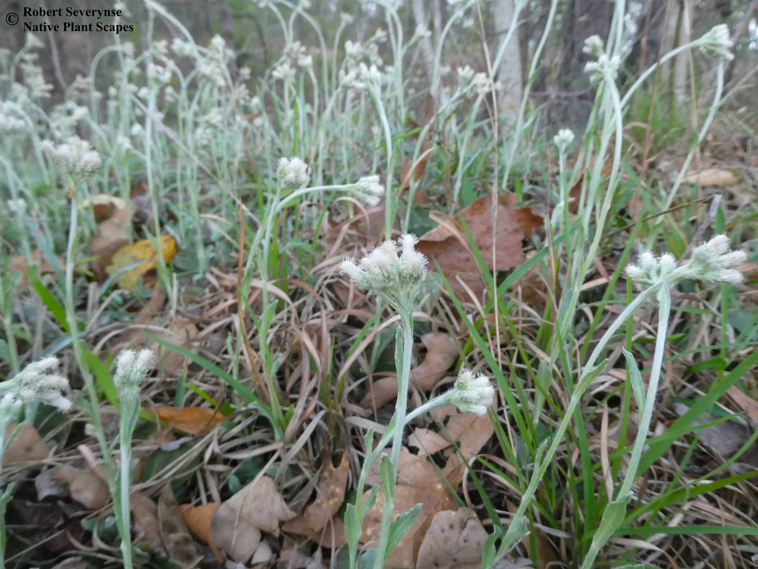 Plantain-Leaved Pussytoes is a larval host for 3 species of caterpillars including the American Lady. Flowers attract pollinators with nectar (and maybe pollen). Some game birds such as quail and grouse may eat the seeds.