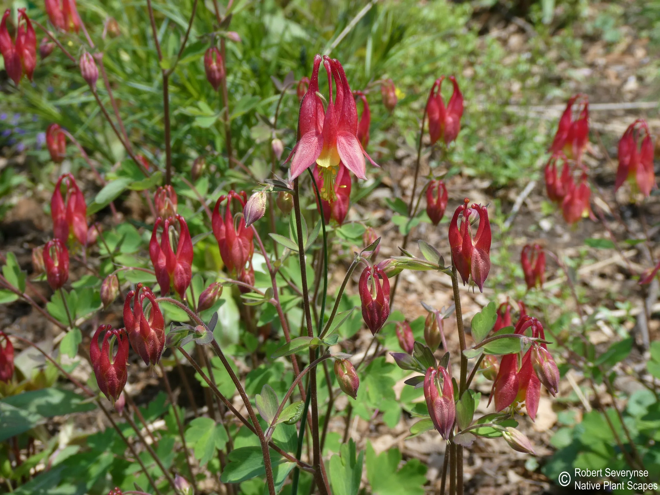 Wild Columbine is a pollen and nectar source for many pollinators, particularly bees and hummingbirds. It is a larval host for the Columbine Duskywing and various moth species. Songbirds may eat the seeds.