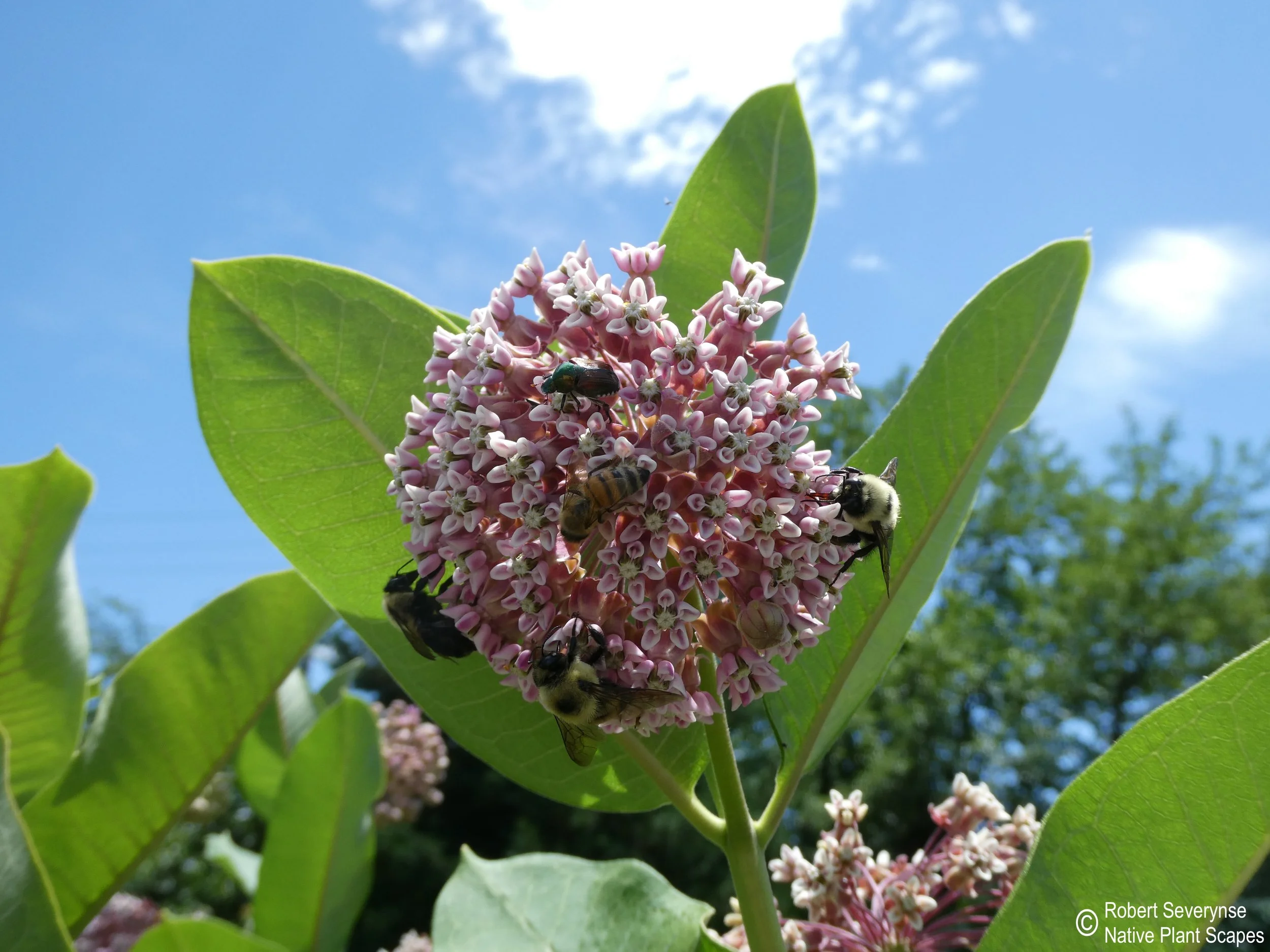 Common Milkweed is a larval host for the Monarch butterfly as well as other butterfly and moth species. It is also a nectar and pollen producer that attracts a wide variety of pollinators.
