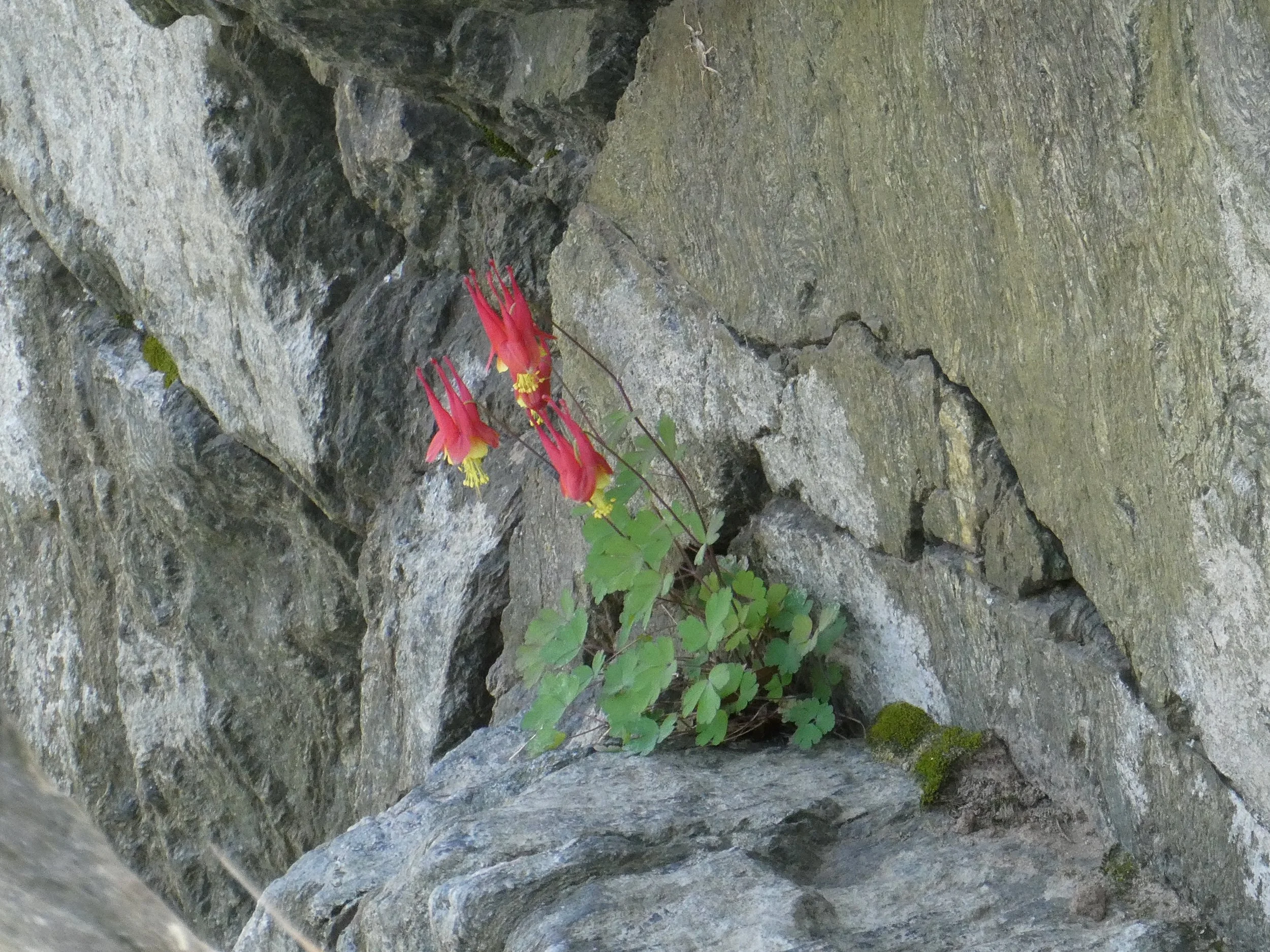Red Columbine is native to most states east of the Mississippi River and is the only Columbine native to the eastern United States. Most often, plants are found growing on notches with little soil in the sides of cliffs or outcrops. However, it can also be found growing on the ground in deeper soils. Around Washington D.C., Wild Columbine can be found in the Great Falls areas in Maryland and Virginia as well as Little Bennett Regional Park in Montgomery County, MD.