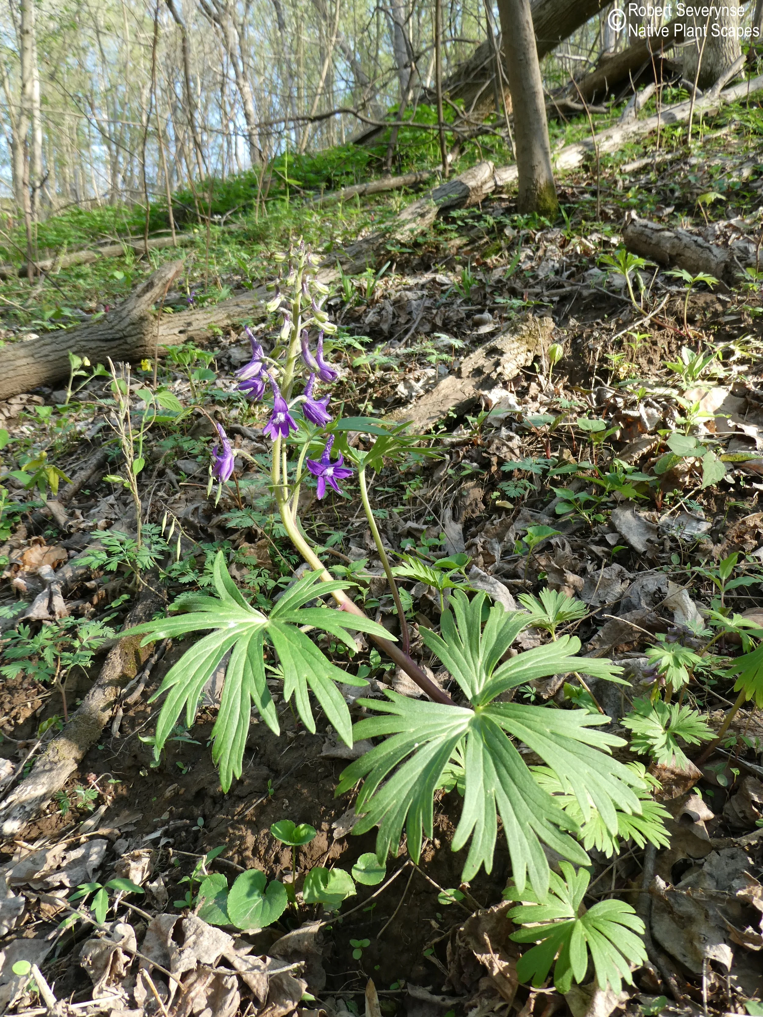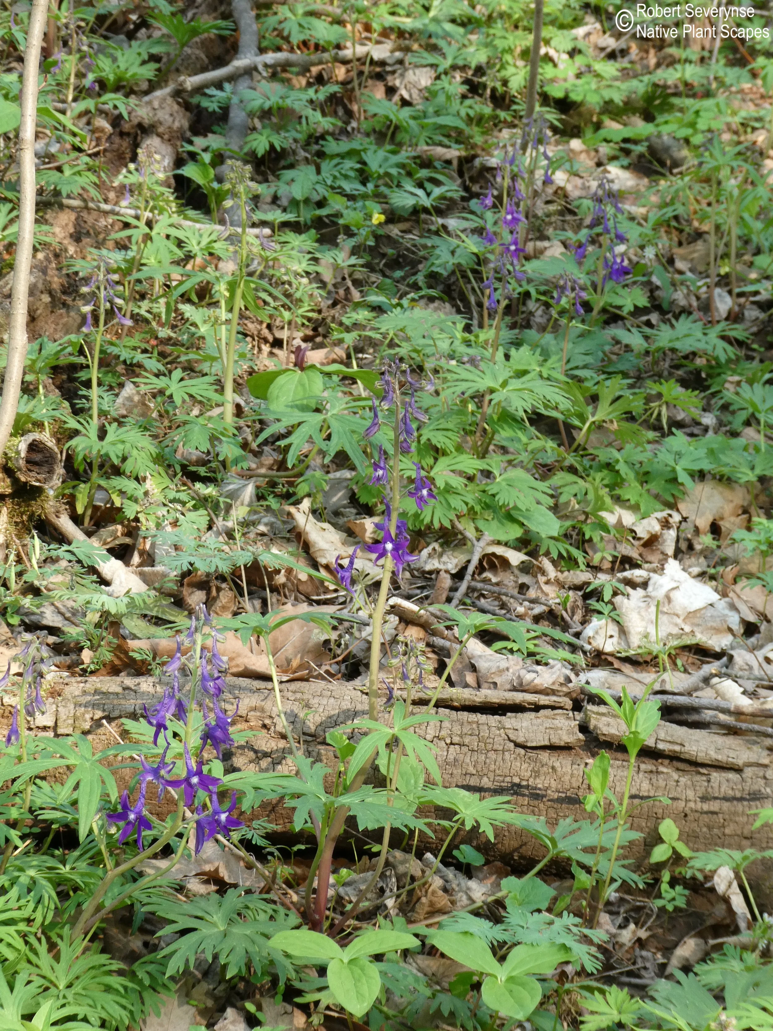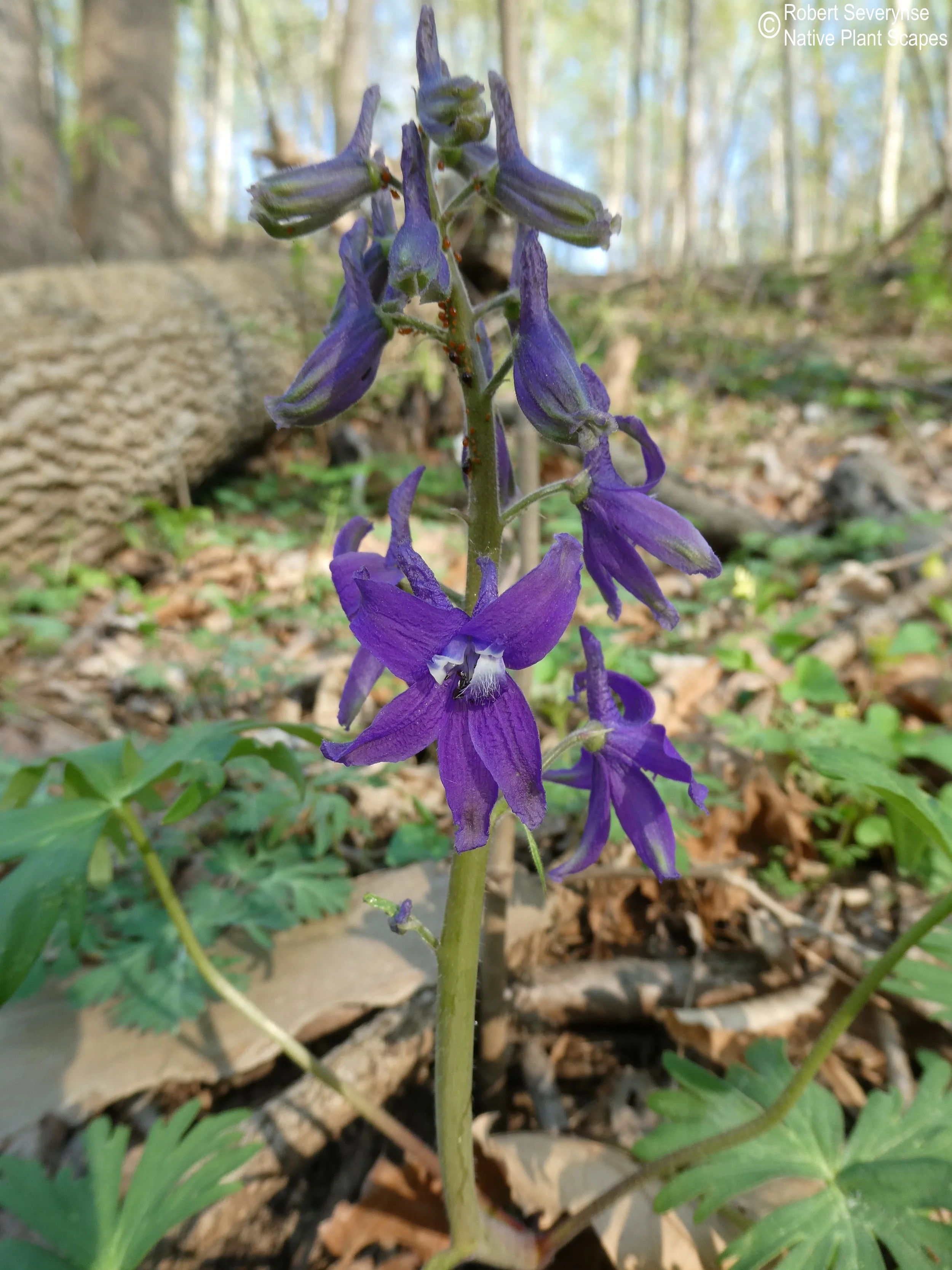 Dwarf Larkspur is a pollen and nectar source for bees and other pollinators. Hummingbirds may also visit the flowers.