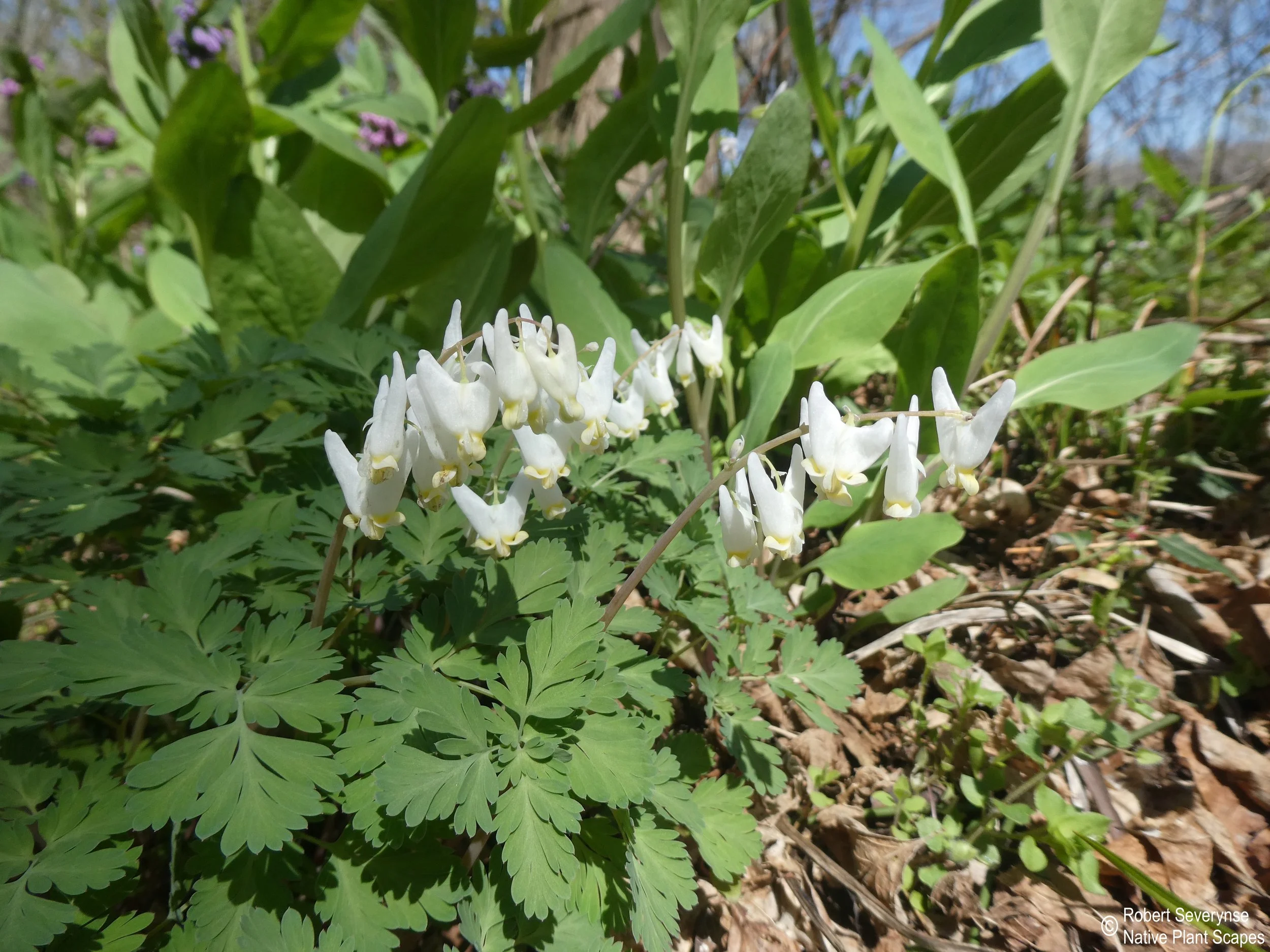 Dutchman’s Breeches flowers are a nectar source for various pollinators, primarily bees. Ants eat the elaiosomes of the seeds and chipmunks can eat the tubers.