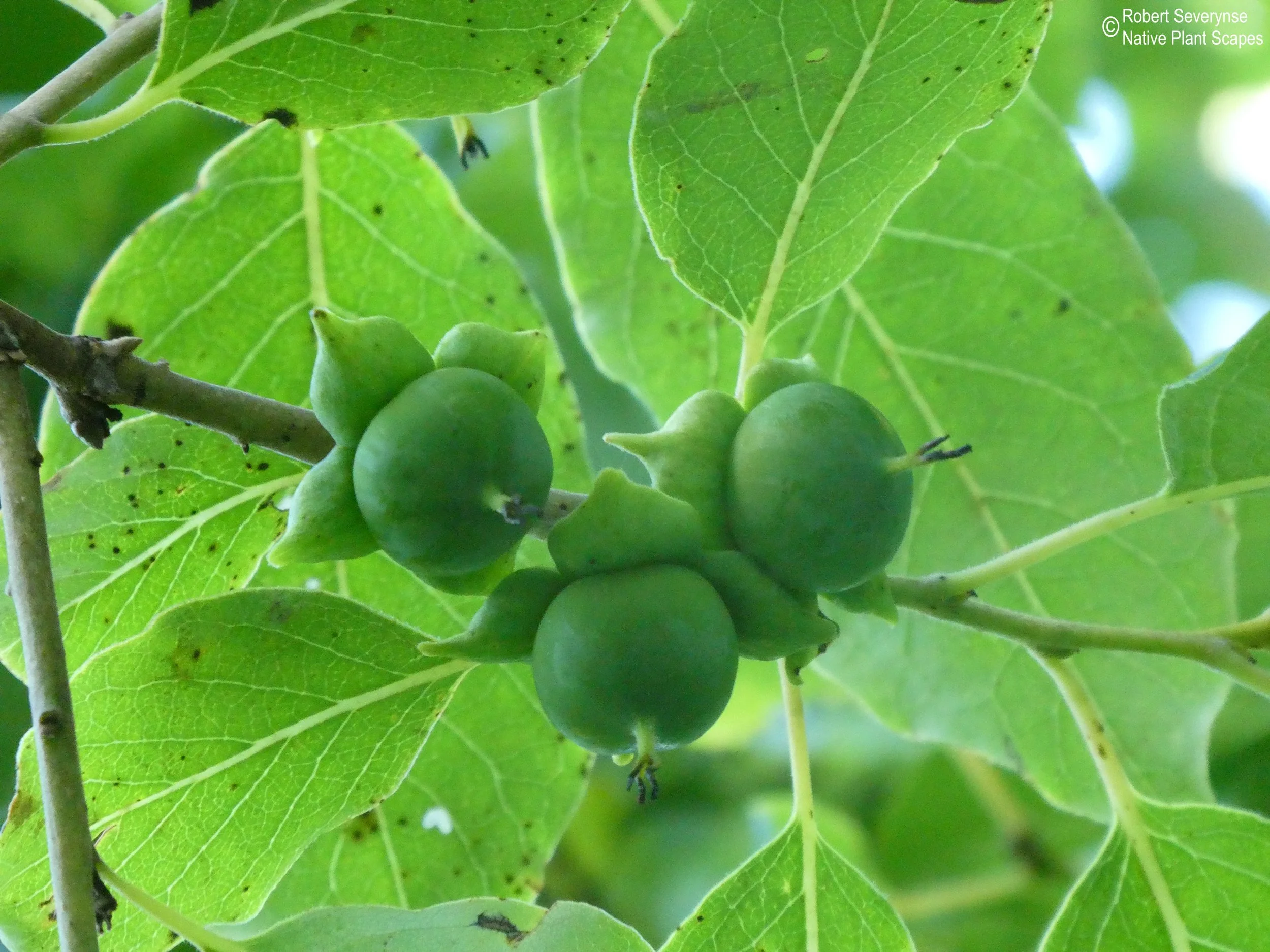 Common Persimmon is a larval host that supports 46 species of caterpillars including the luna moth. The flowers are a pollen and nectar source for a variety of pollinators and the fruits are eaten by many mammals and birds.