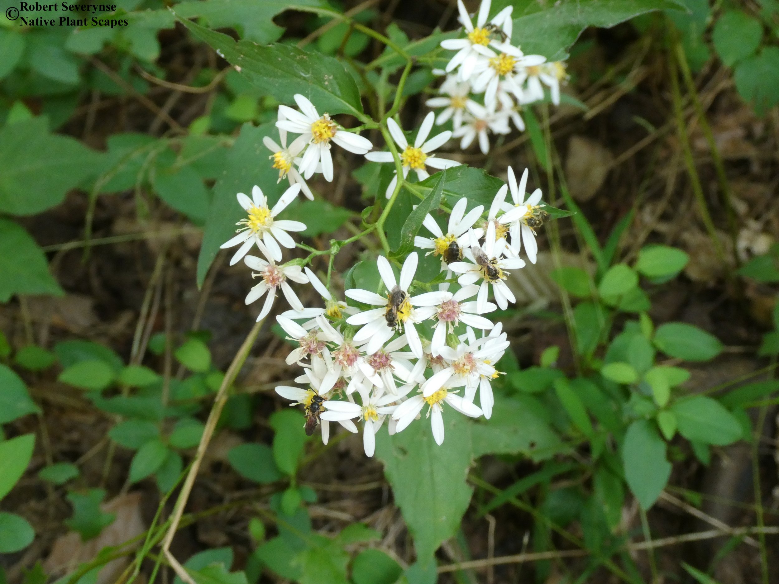 White Wood Aster flowers are a pollen and nectar source for bees and other pollinators. The seeds are eaten by birds and small mammals. It is also a larval host for the Pearl Crescent butterfly.