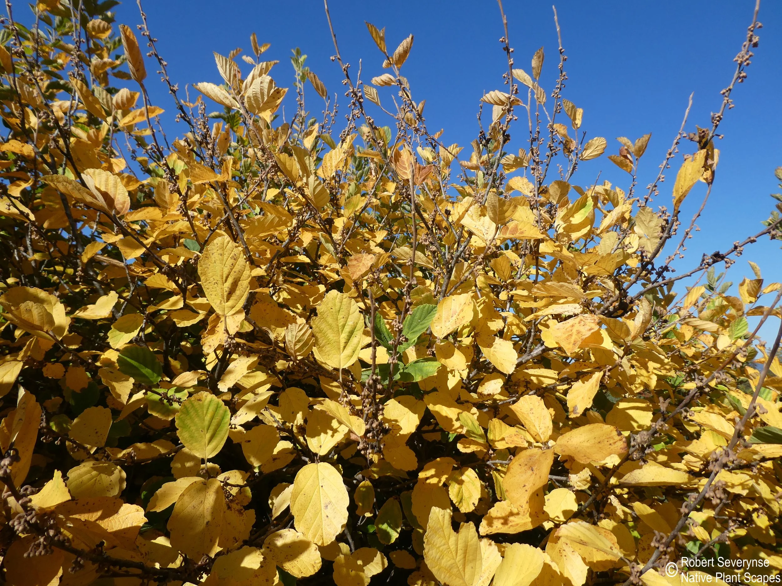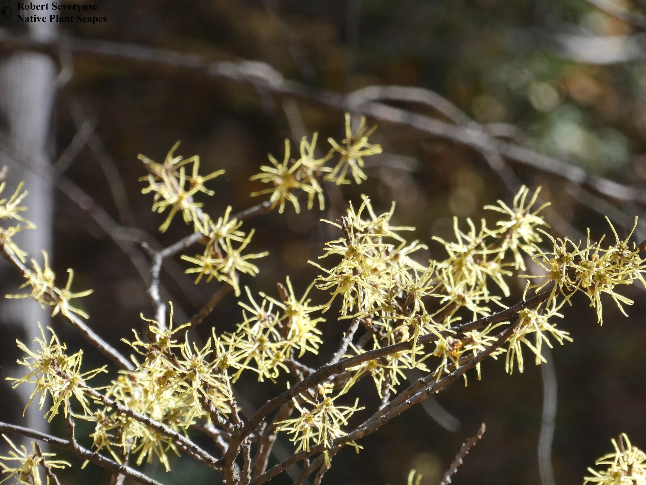 Witch Hazel is a larval host that supports 63 species of moths and butterflies. It is also a late season pollen and nectar source for pollinators. Fruits are eaten by birds (song and game) as well as small mammals. Shrubs provide cover and nesting habitat for birds.