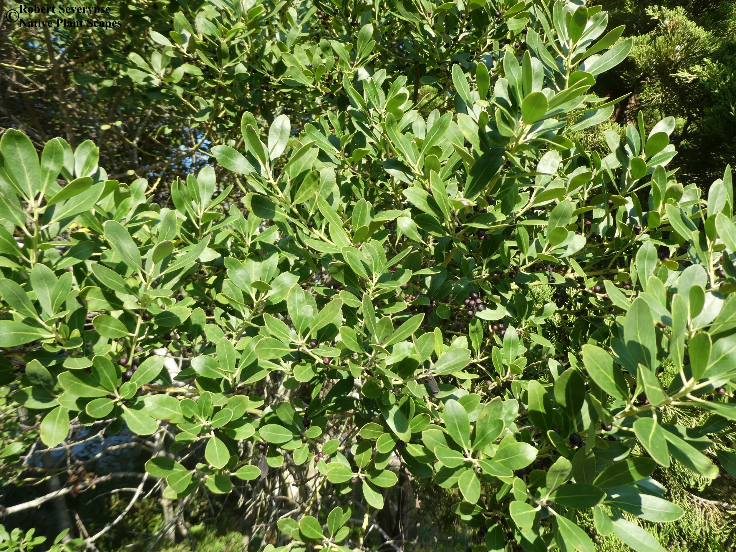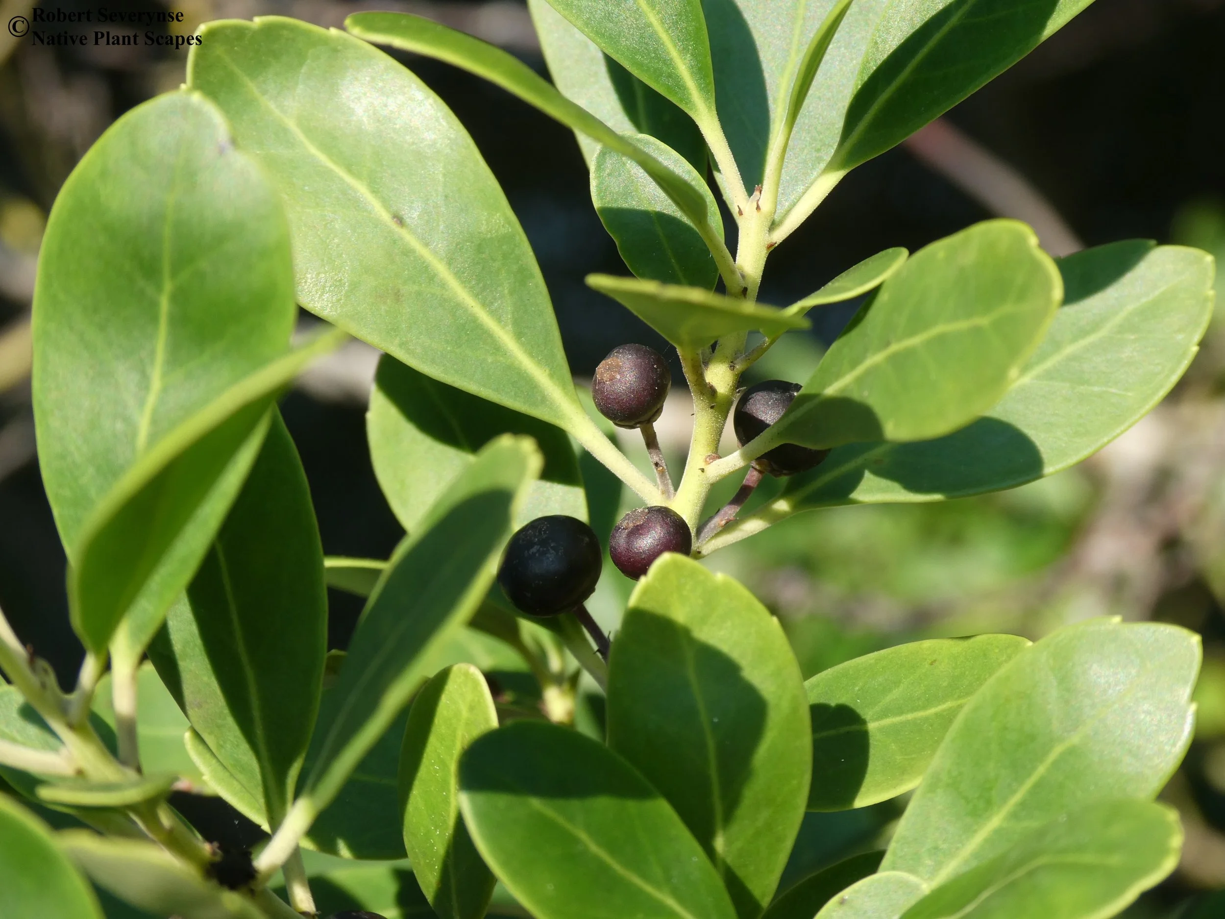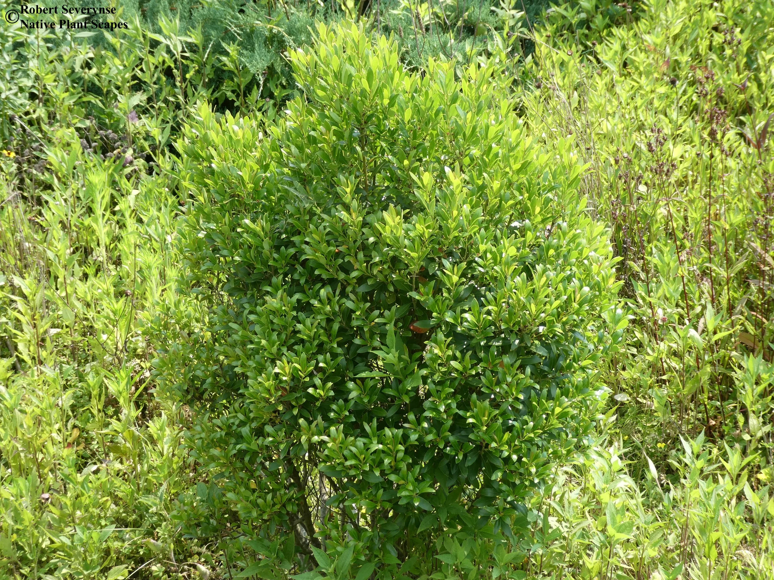 Inkberry provides year round cover for wildlife. Flowers are a pollen and nectar source. Various species of birds will consume the fruits in the winter. Larval host to the Henry's Elfin butterfly and a few other species of caterpillars.