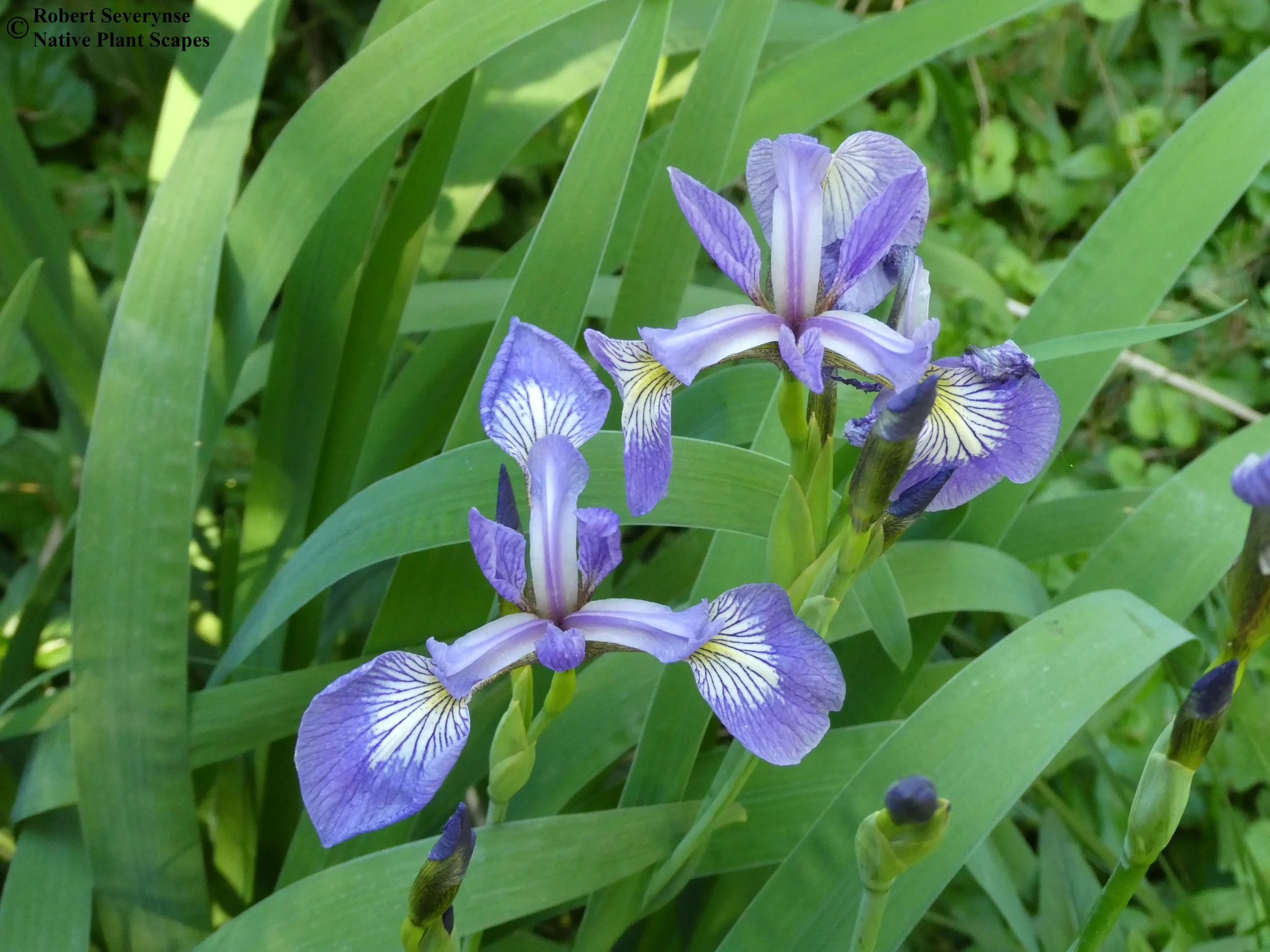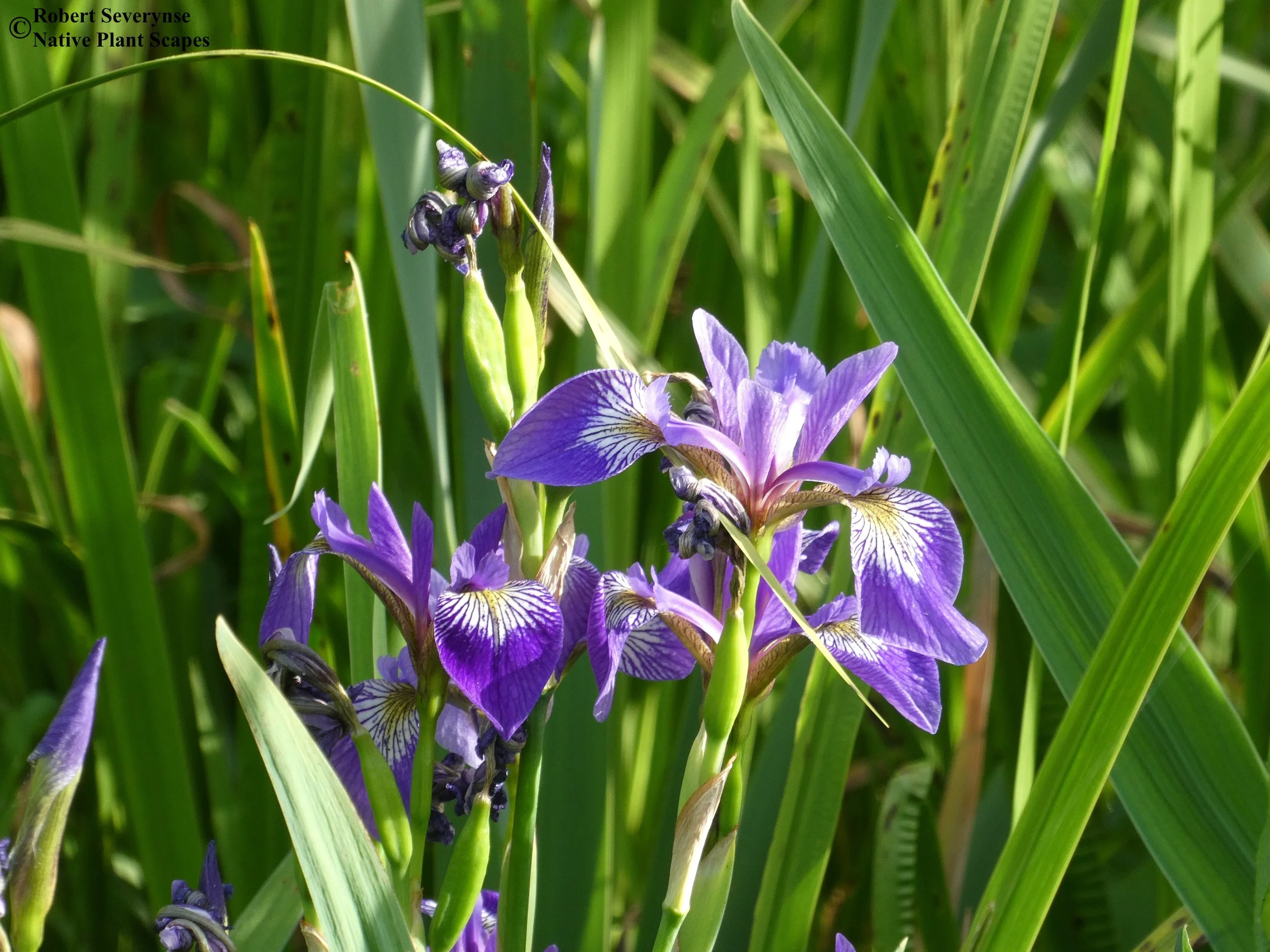 Blue Flag Iris provides is a pollen and nectar source that attracts pollinators, beneficial insects, and can attract hummingbirds. Plants are a larval host to several moth species and can offer cover for wildlife.