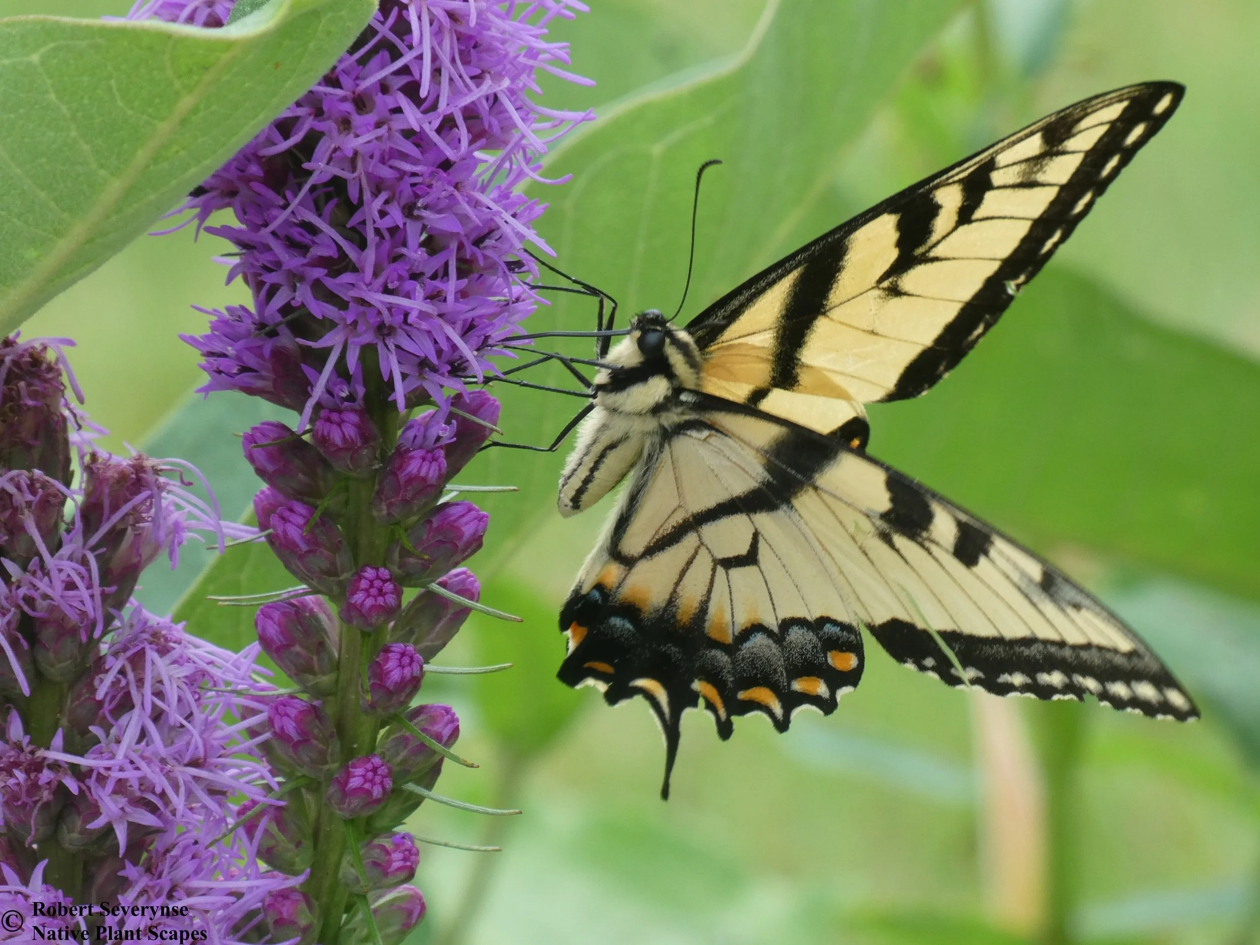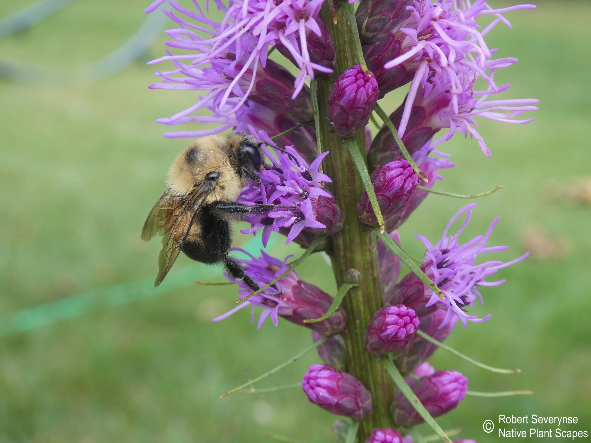 Dense Blazing Star is a pollen and nectar source, attracting butterflies, bees, and other pollinators. It is the larval host for several moth species and the Painted Lady Butterfly (Vanessa cardui). Finches (and maybe other birds) eat the seeds.