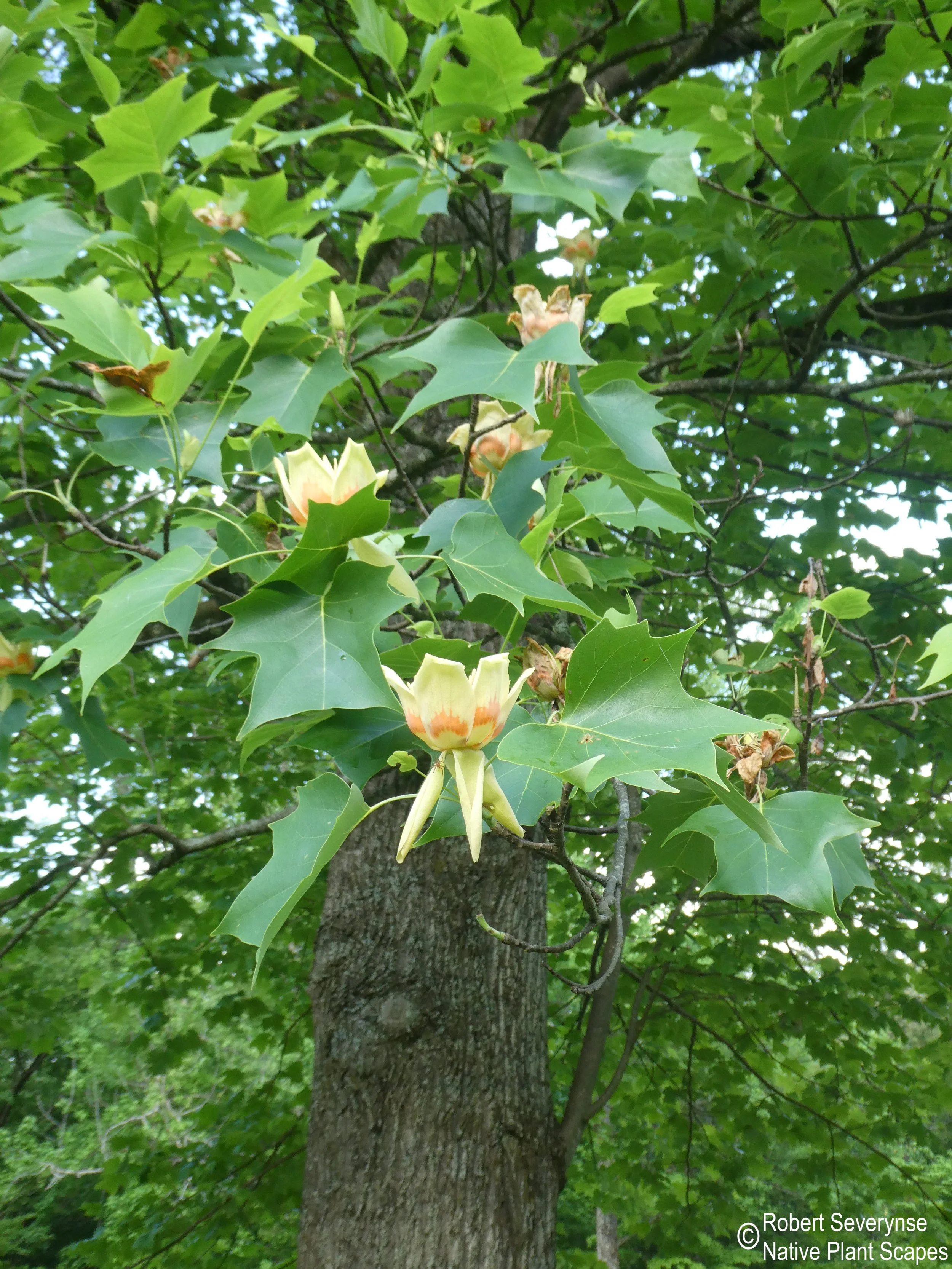 Tulip Poplar flowers produce pollen and nectar which attract a variety of pollinators, as well as hummingbirds. The seeds are a food source for several birds as well as small mammals. Trees create nesting sites along with cover for birds and mammals. It is a larval host for 21 species of moths and butterflies including the Eastern Tiger Swallowtail.