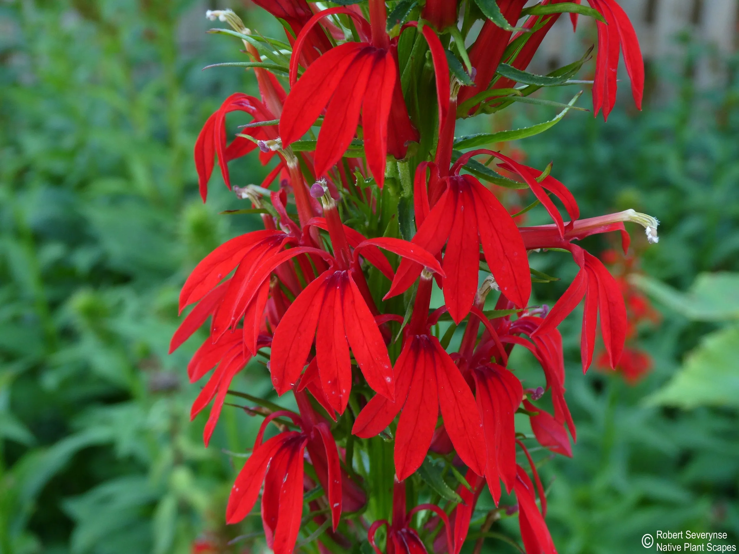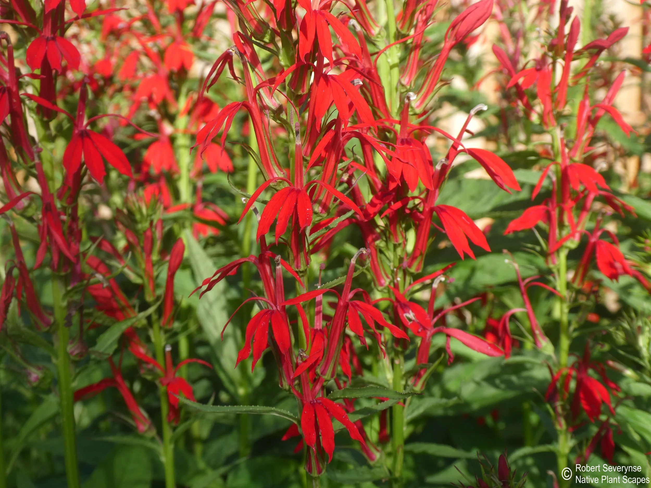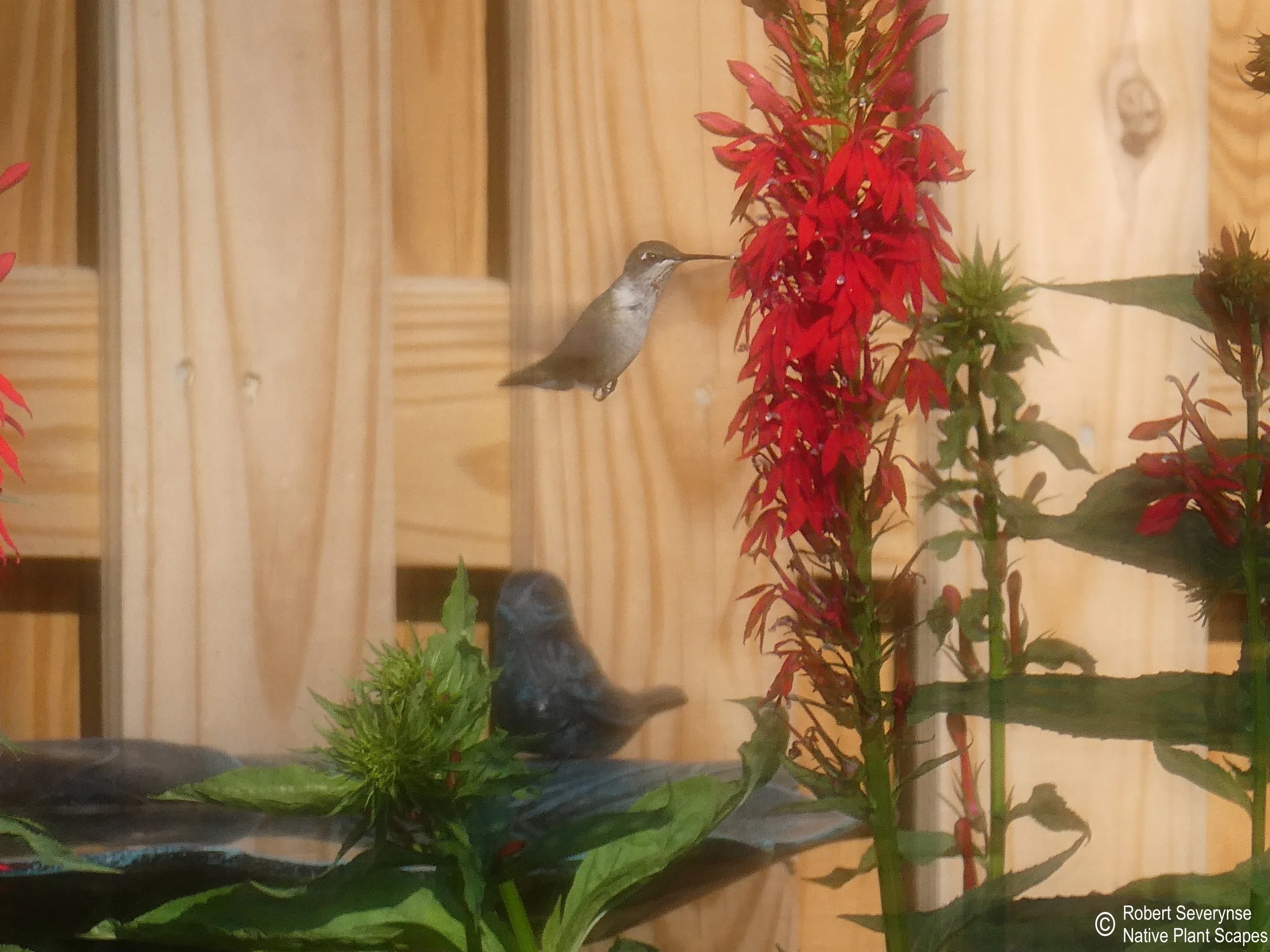 Cardinal flower is a nectar source for a wide variety of pollinators, and is a Hummingbird magnet. It is also the larval host to a couple of moth species.