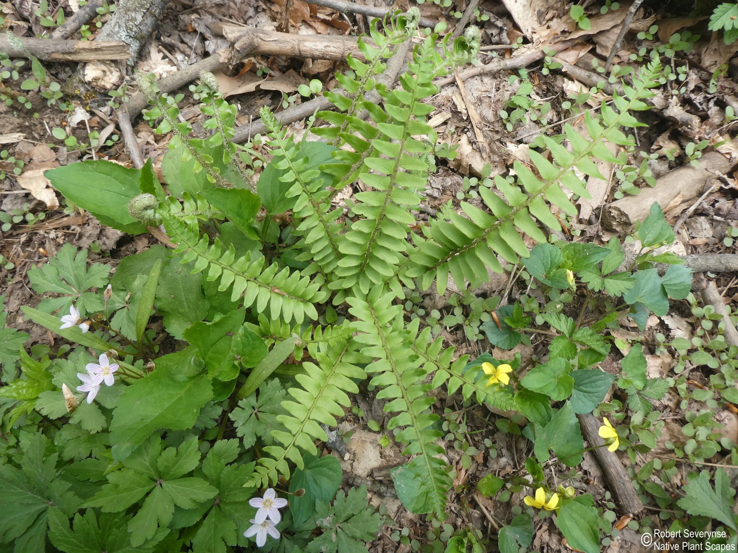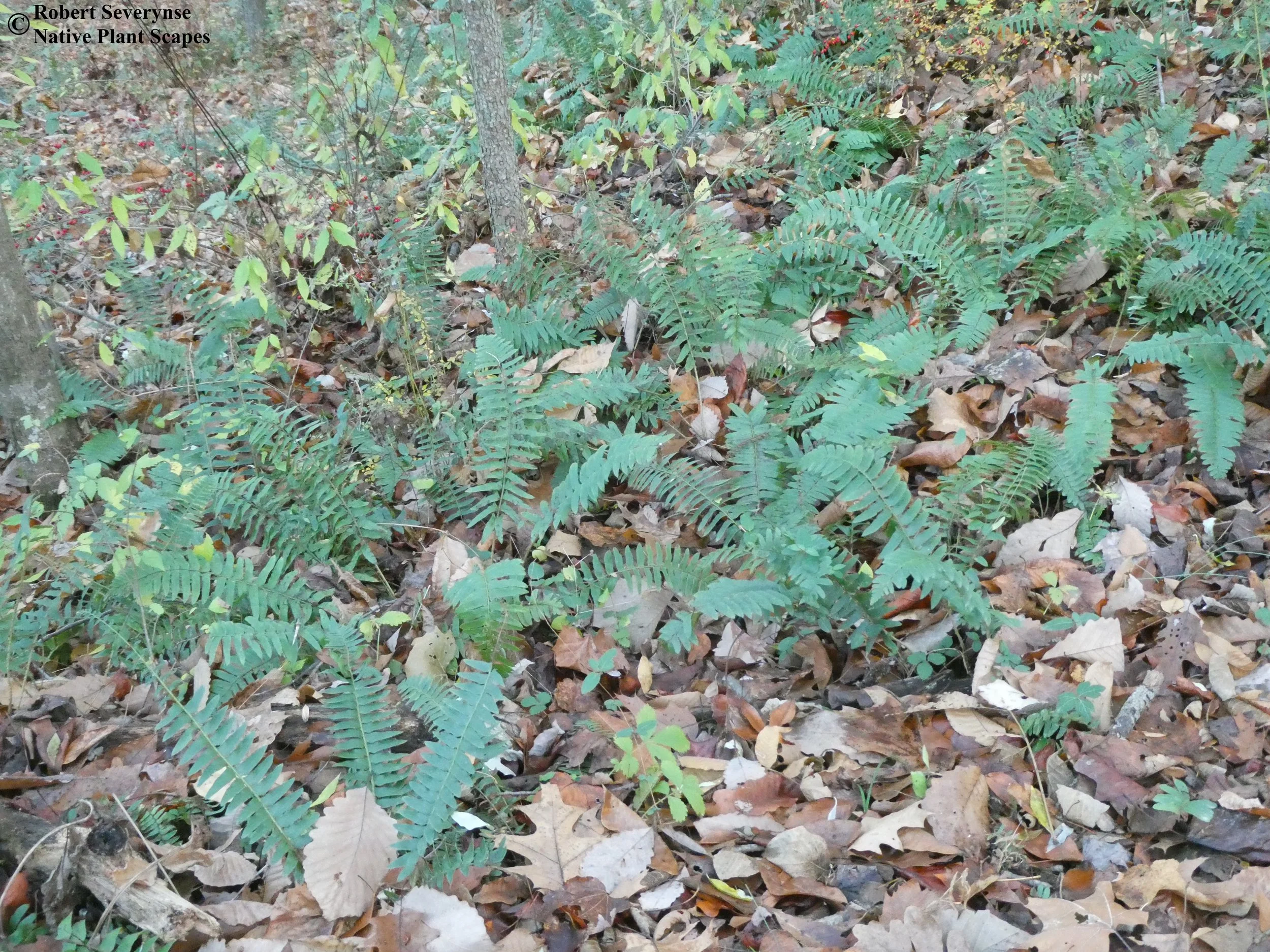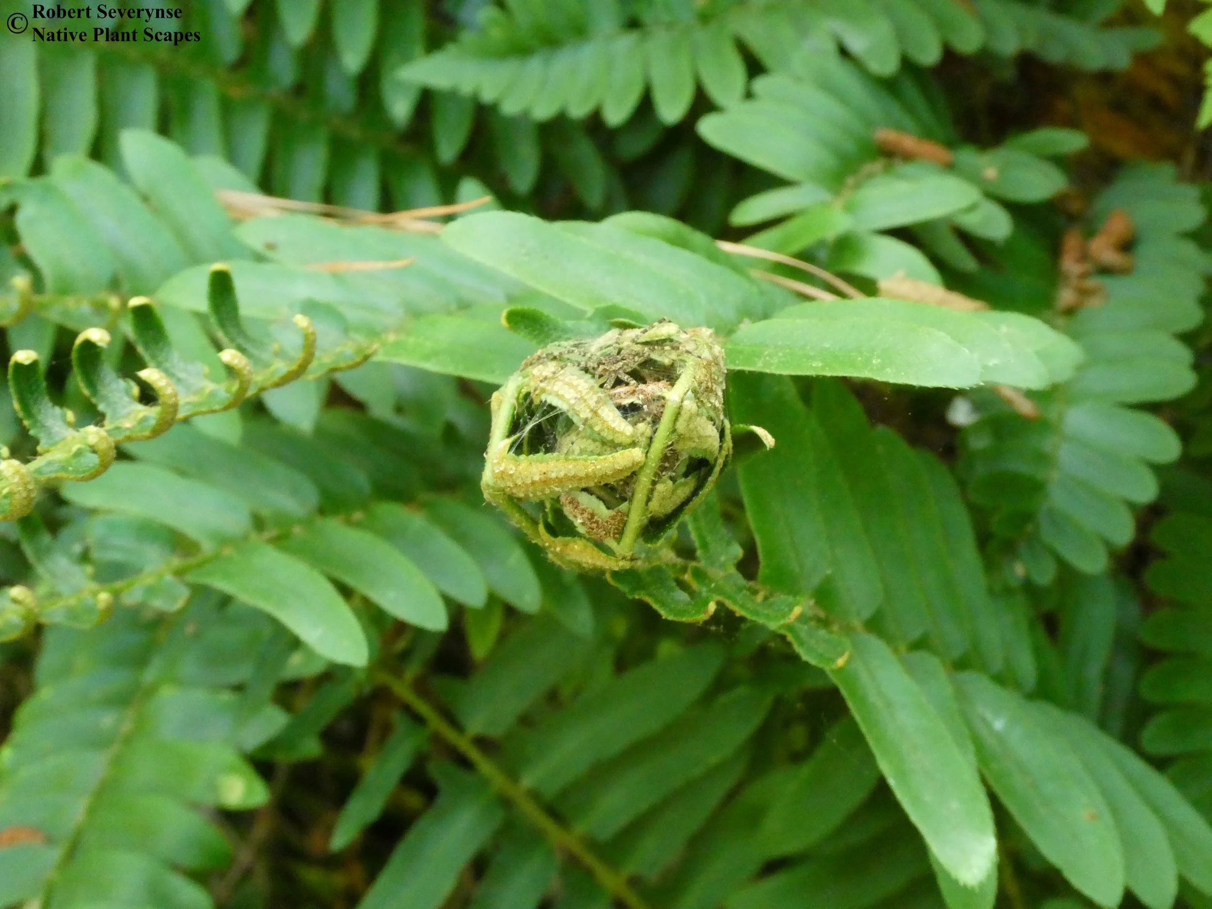 Christmas Fern provides year round cover for small wildlife. Birds can use parts in nest construction and young fronds may be eaten by the Ruffed Grouse.