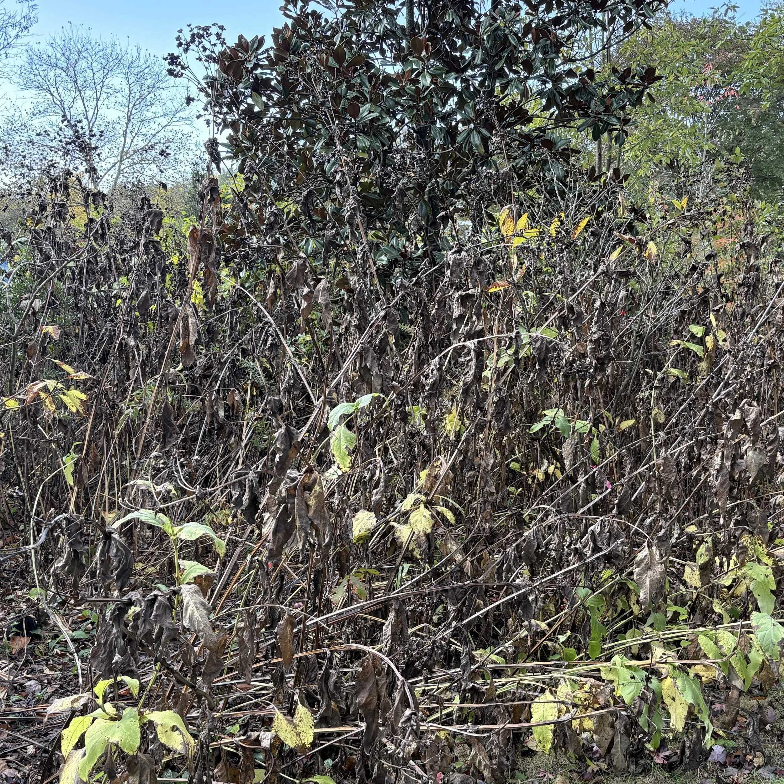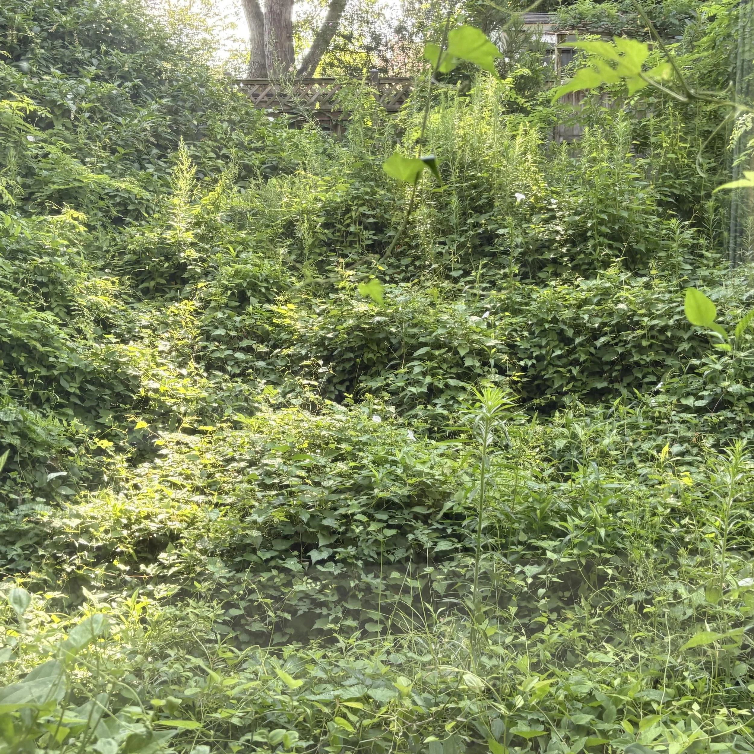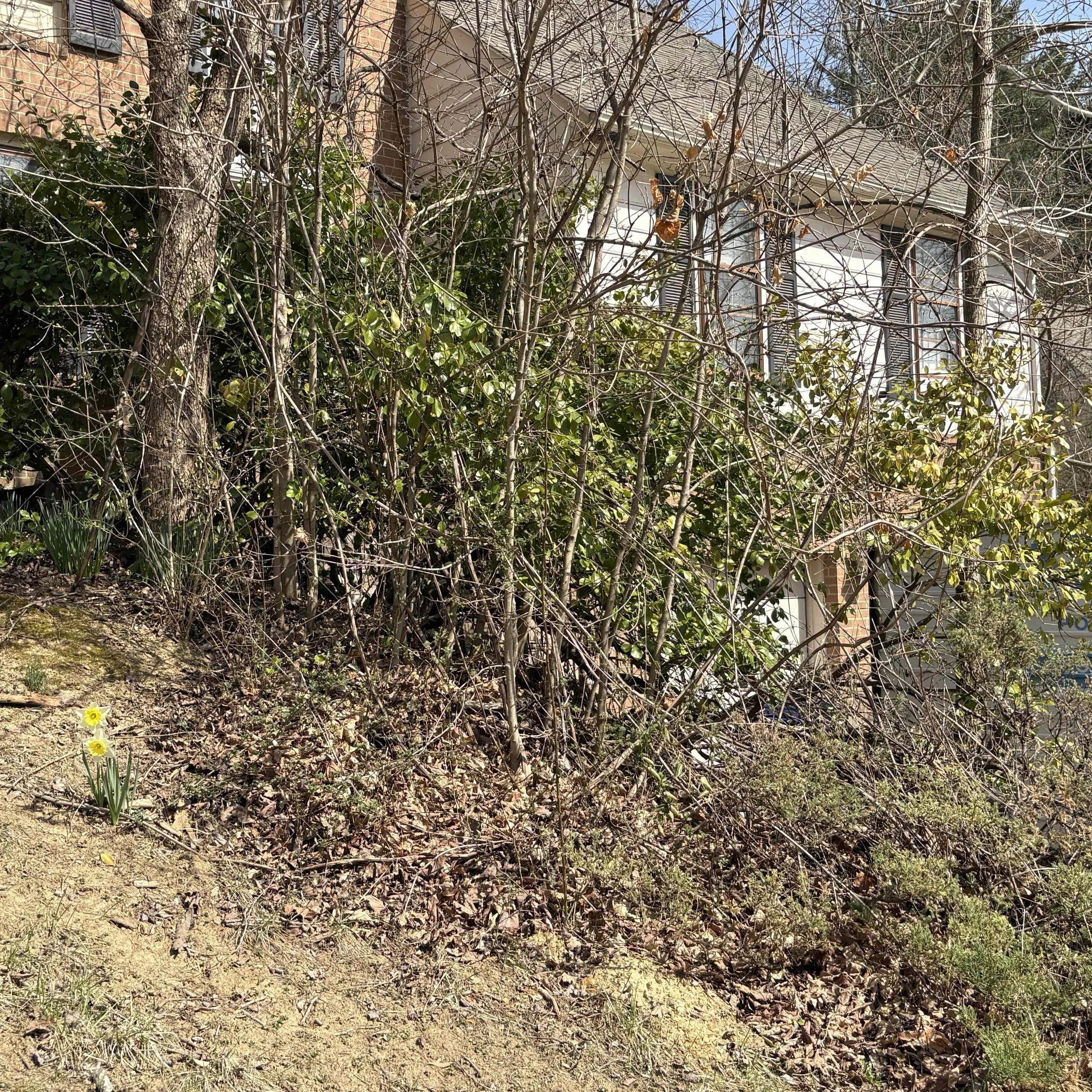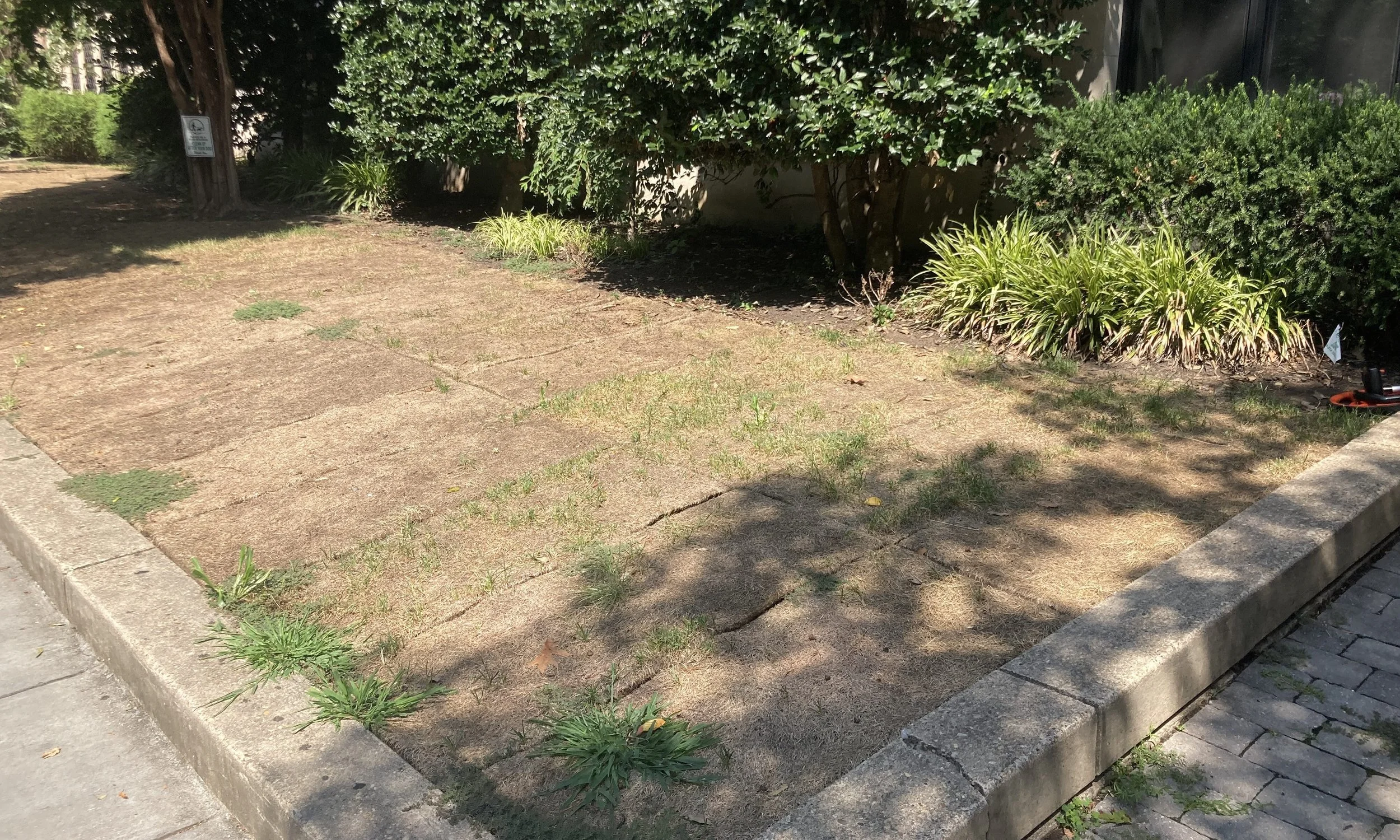 Several plant species dominated and took over the existing garden space. These aggressive plants outcompeted others to create a space with an overly wild appearance. We cleared out all of the vegetation and planted low maintenance native plants that are not aggressive.