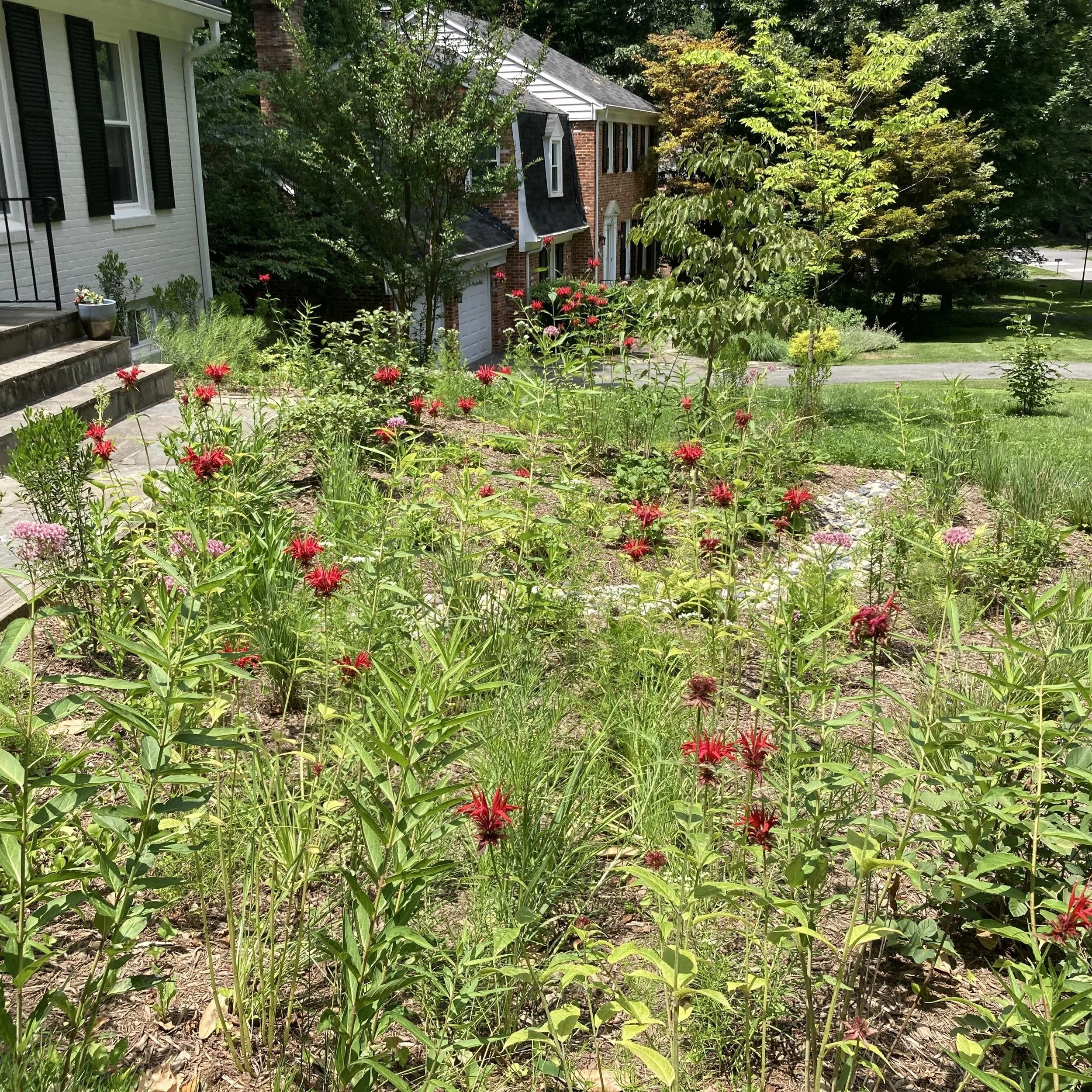 Overgrown grass and weeds were replaced with a diverse pollinator garden to provide curb appeal and be low maintenance.