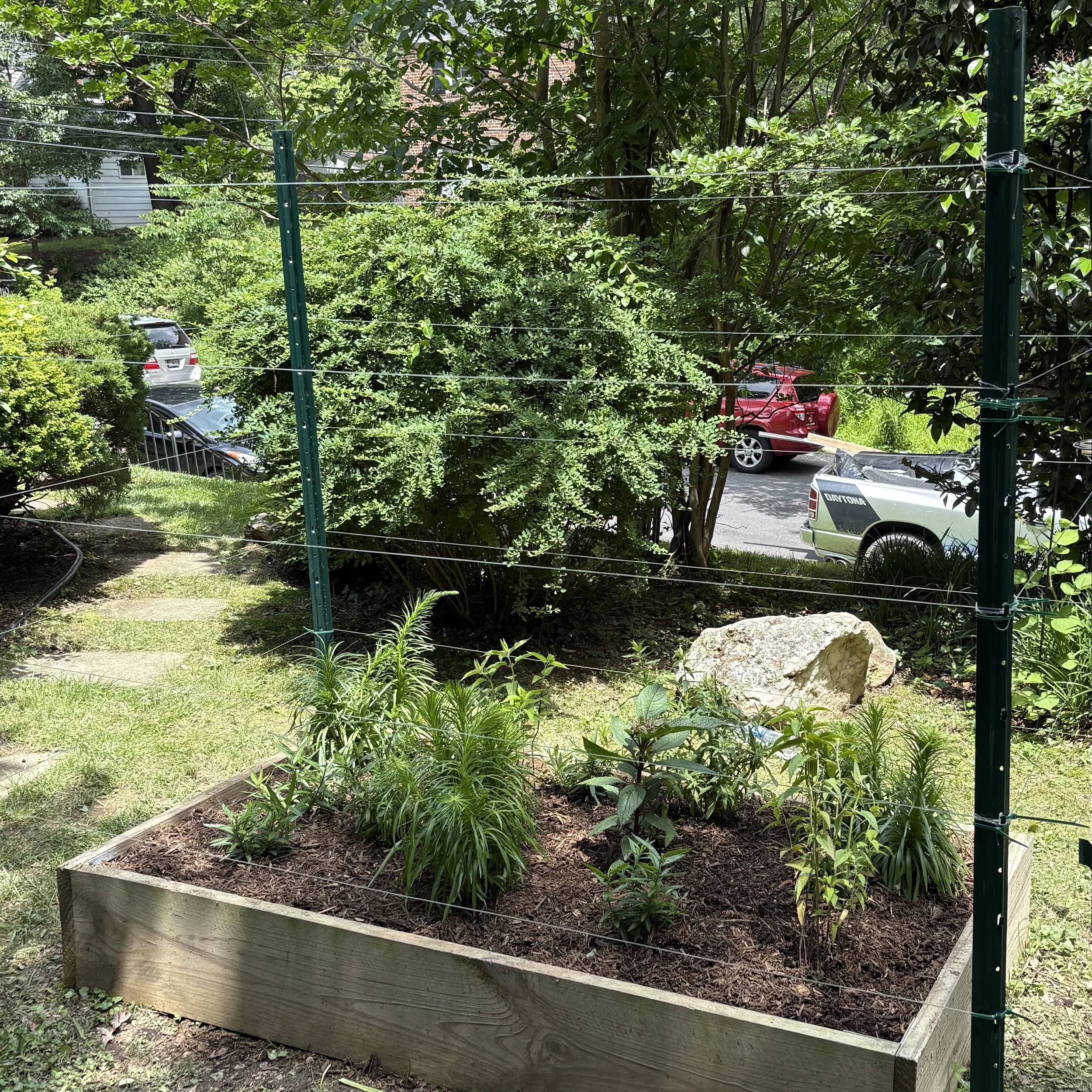 A raised bed was cleaned out and replanted with deer resistant natives. The fence adds extra protection from the deer while being visually unassuming.