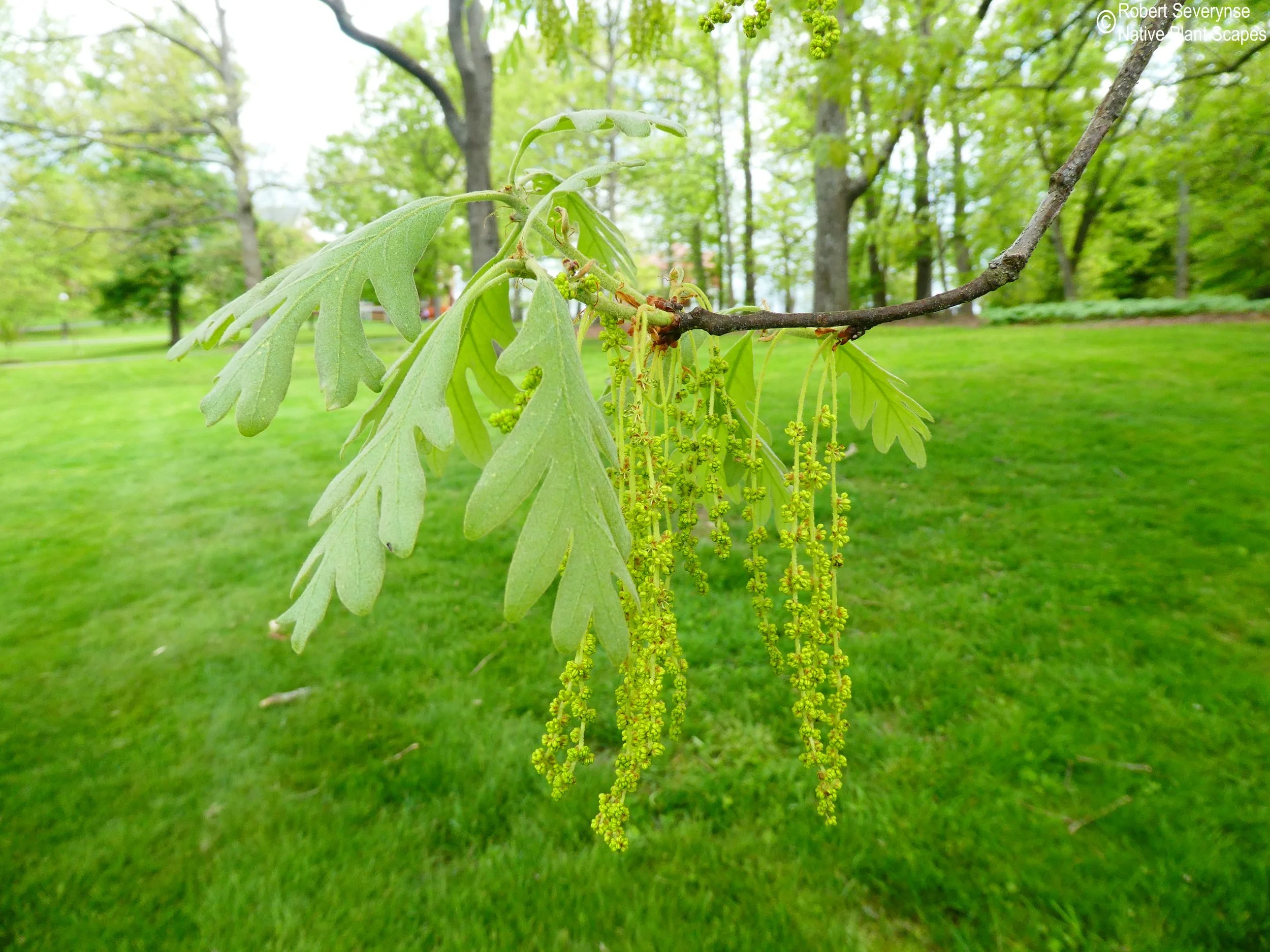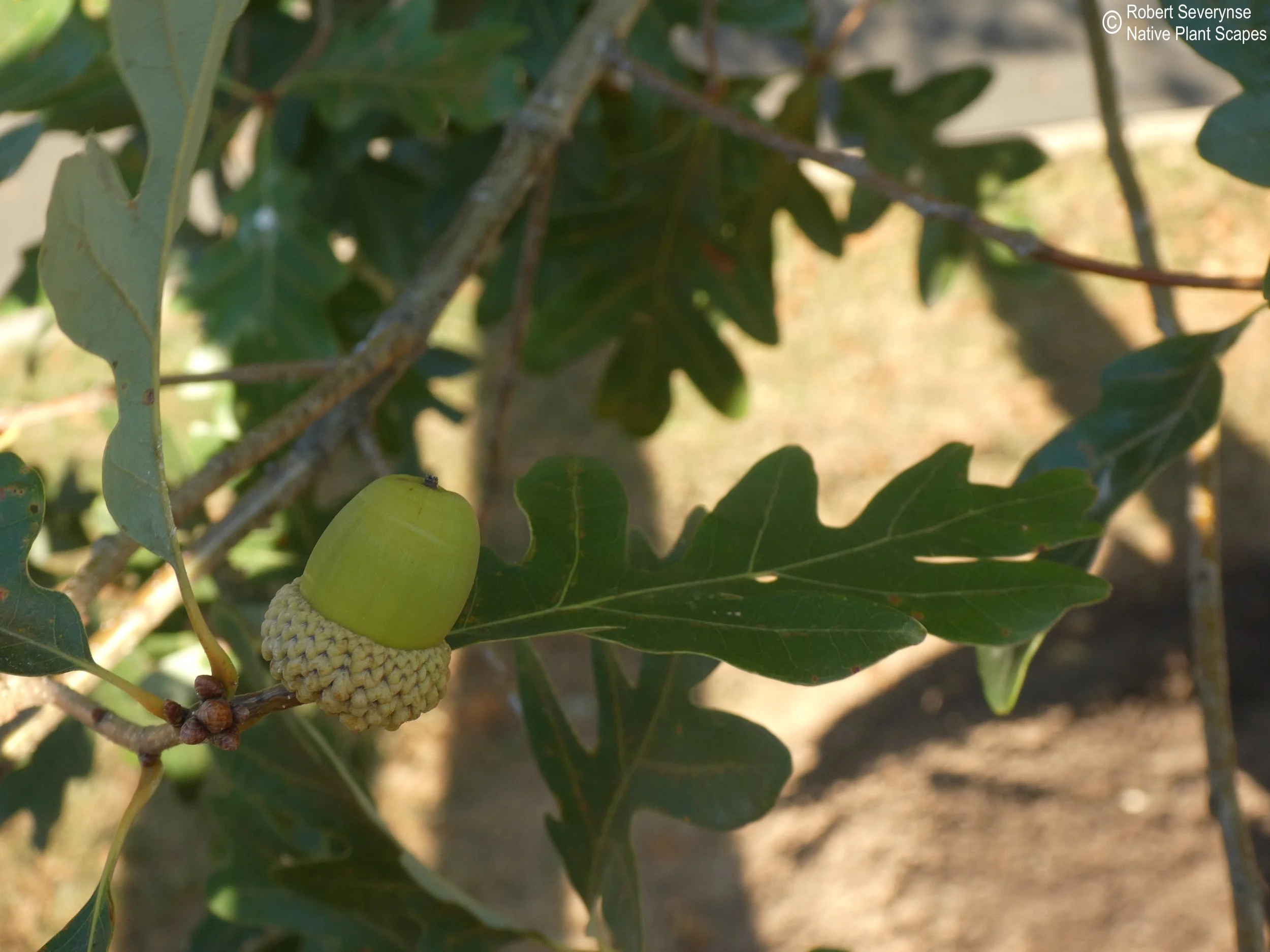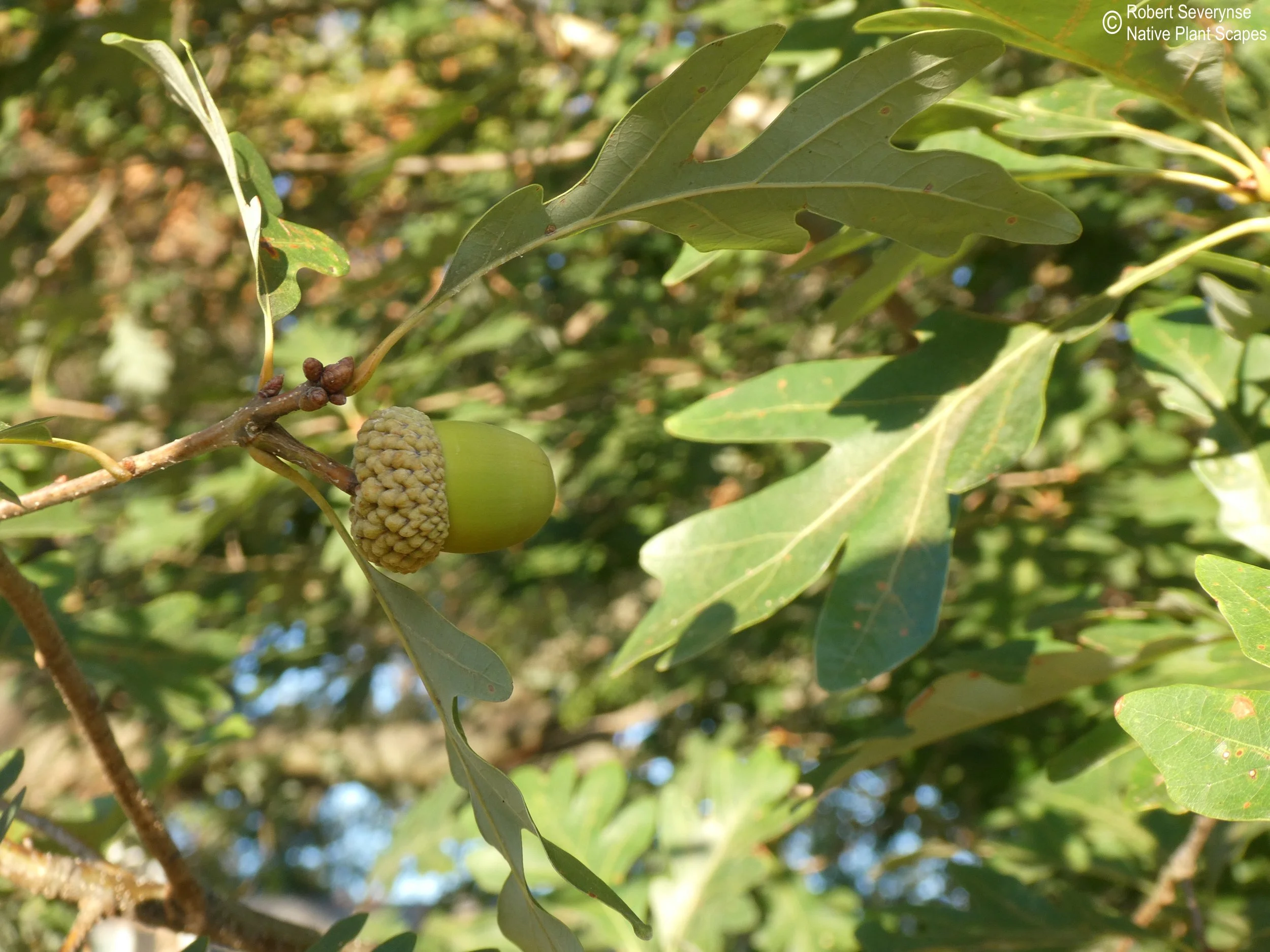 White Oak acorns are an important food source for many birds and mammals. Other parts of this tree are eaten by various mammals (Dried leaves, saplings and young shoots eaten by deer, twigs eaten by rabbits and beavers, and bark eaten by porcupine). Trees offer habitat, cover, nesting sites, cavities, and protection for a variety of wildlife. Birds and mammals use twigs and leaves in nest construction, and may perch on the branches. Since leaves can persist more than many other plant species in some areas, young oaks may provide brushy winter cover. These persisting leaves are used by some insects to lay their eggs. Catkins can attract pollinators in the spring. Larval host that supports 557 species of caterpillars.