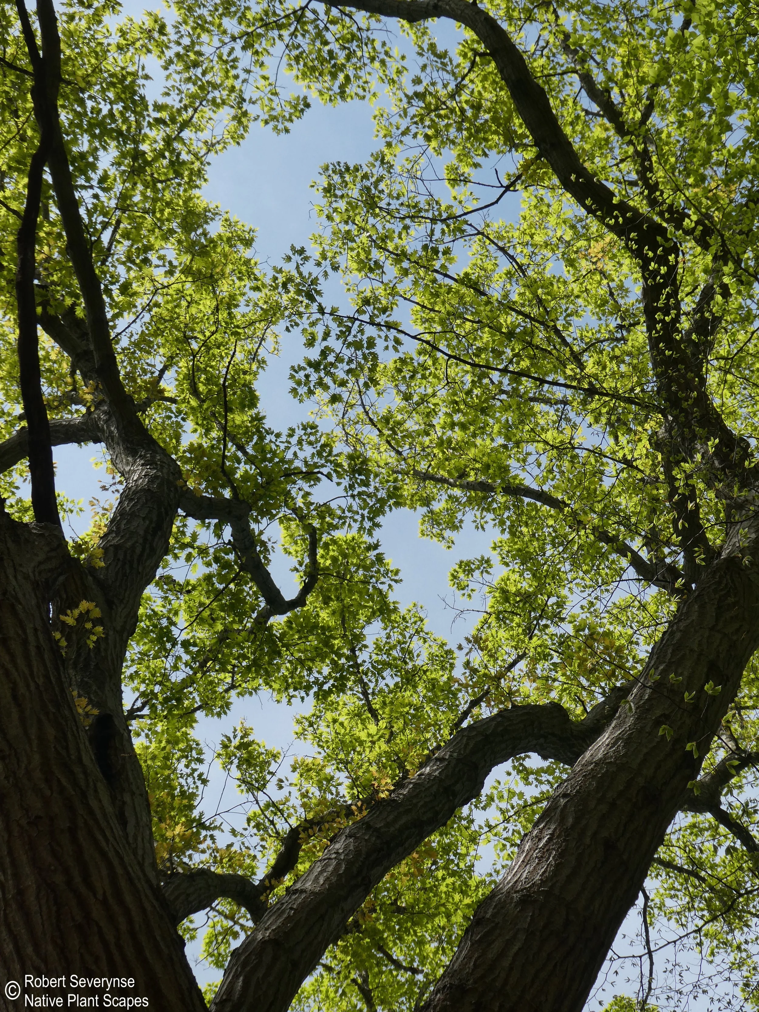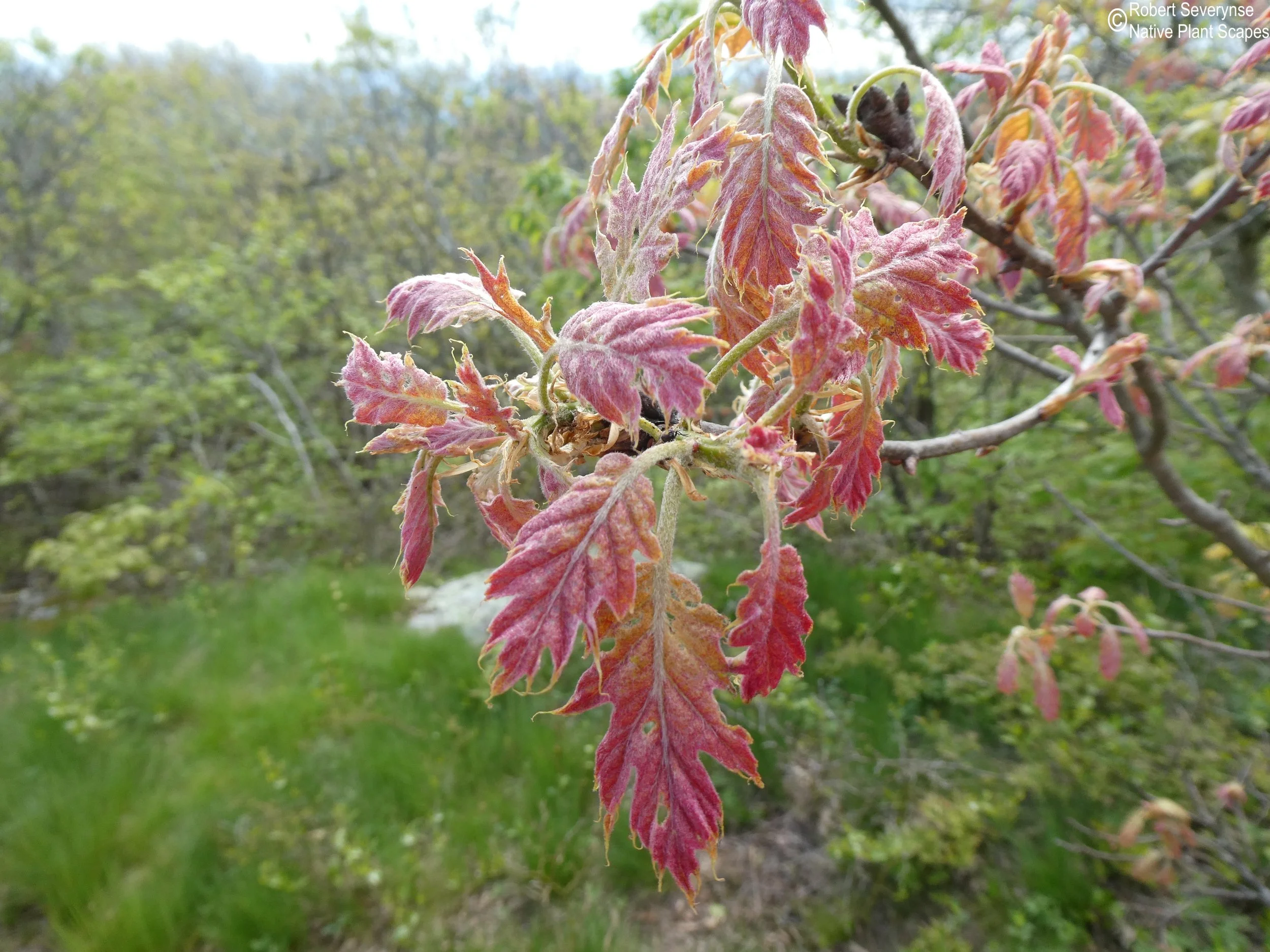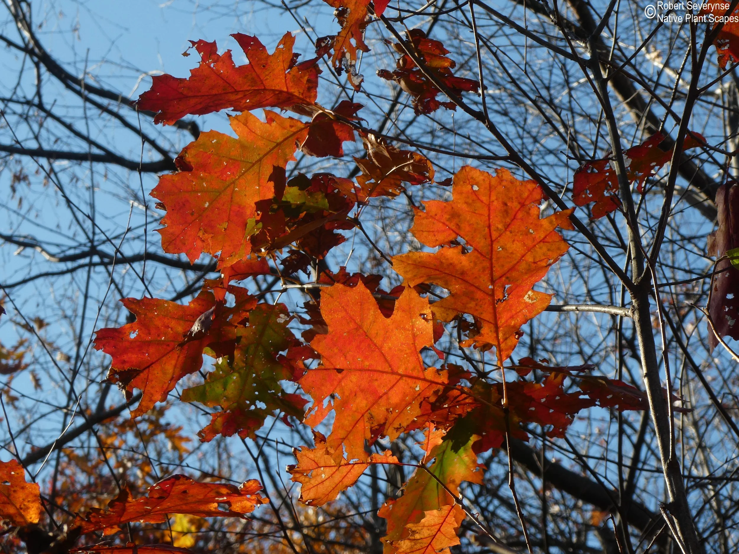 Northern Red Oak acorns are an important food source for many birds and mammals. Other parts of this tree are eaten by various mammals (Dried leaves, saplings and young shoots eaten by deer, twigs eaten by rabbits and beavers, and bark eaten by porcupine). Trees offer habitat, cover, nesting sites, cavities, and protection for a variety of wildlife. Birds and mammals use twigs and leaves in nest construction, and may perch on the branches. Since leaves can persist more than many other plant species in some areas, young oaks may provide brushy winter cover. These persisting leaves are used by some insects to lay their eggs. Catkins can attract pollinators in the spring. Larval host that supports 557 species of caterpillars.