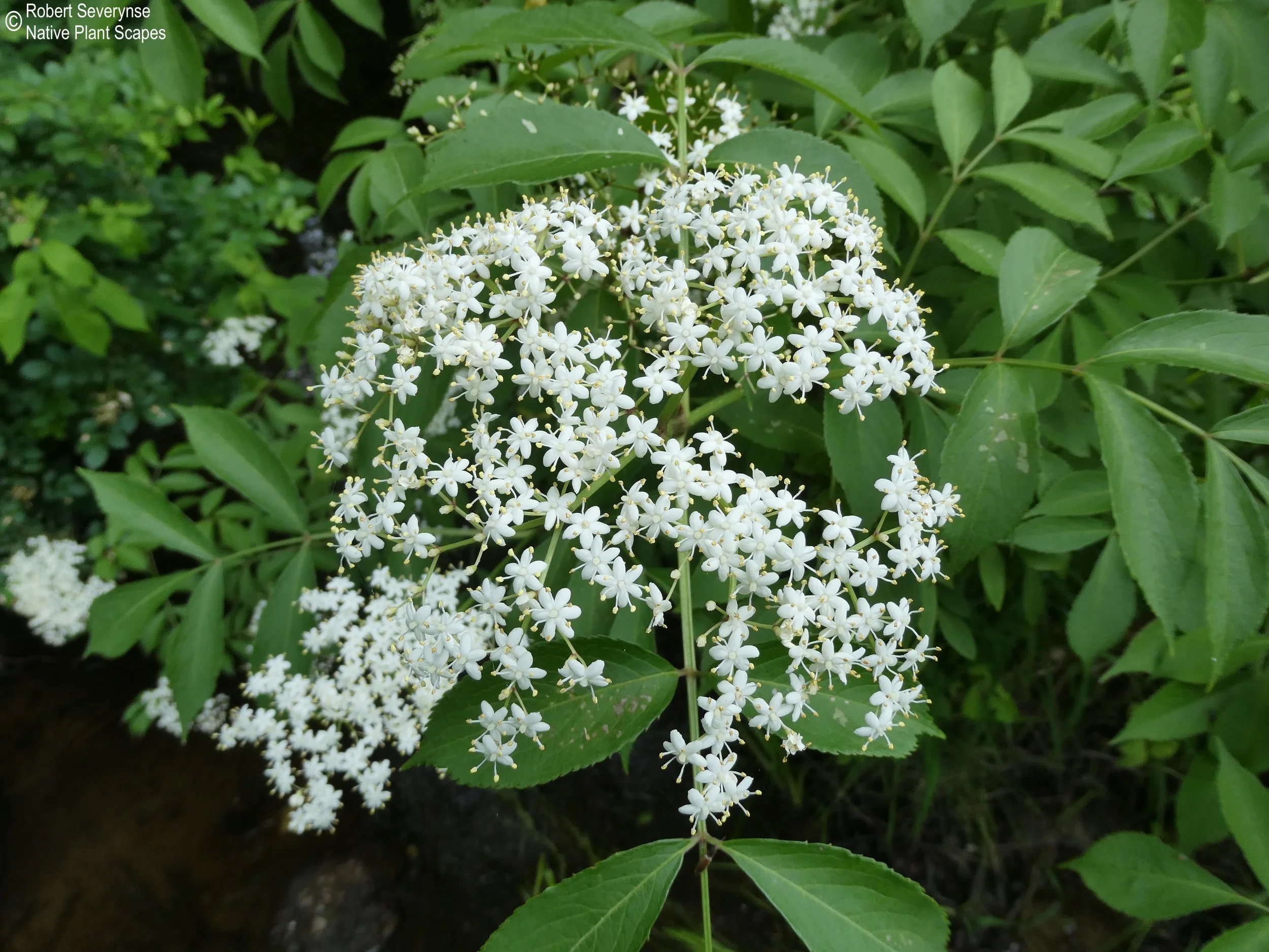Black Elderberry flowers are a pollen source for bees, butterflies, and other pollinators. 120 species of birds have been documented eating the berries in addition to many mammals. Shrubs provide nesting sites and cover for birds and small mammals. Larval host to 42+ species of caterpillars. Broken stems provide homes for beneficial insects.