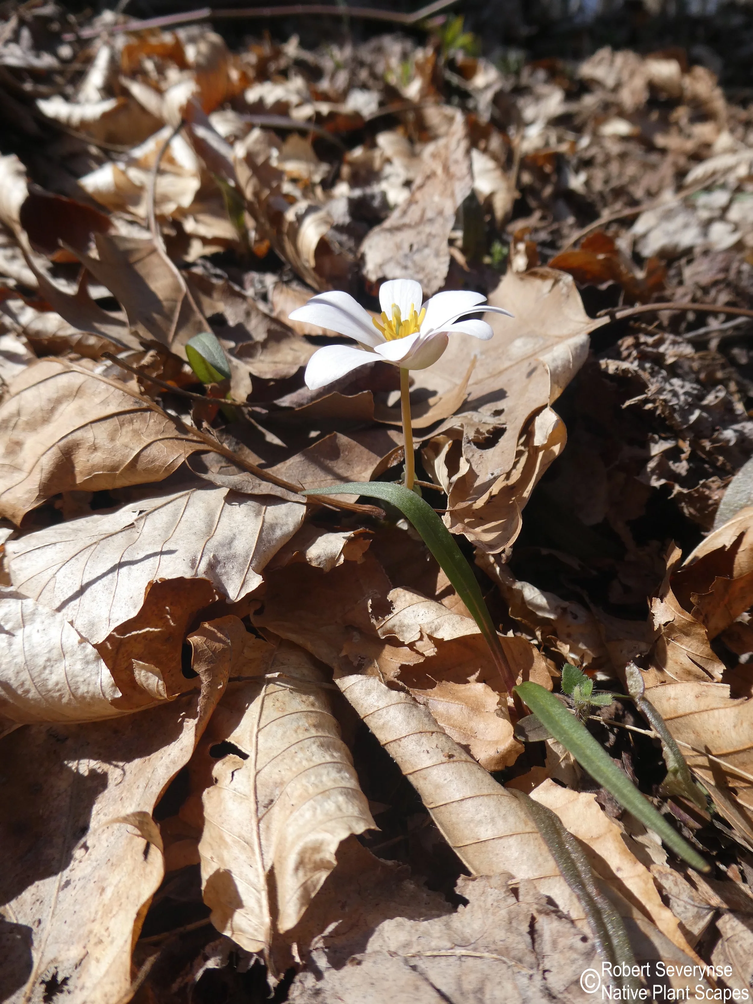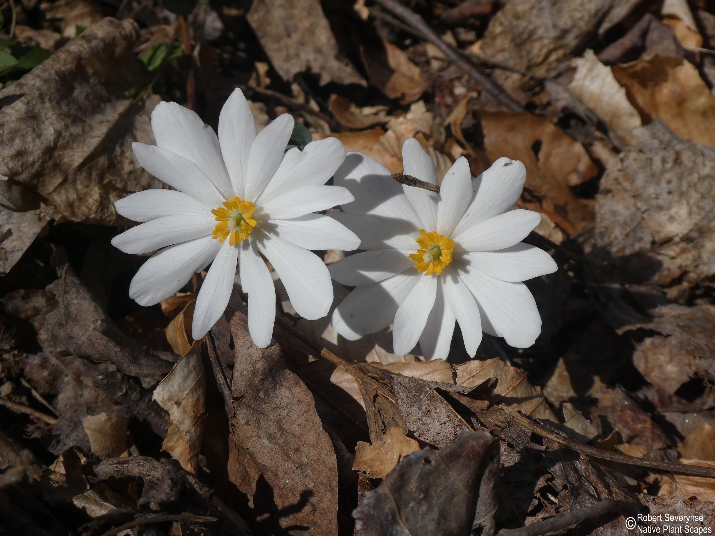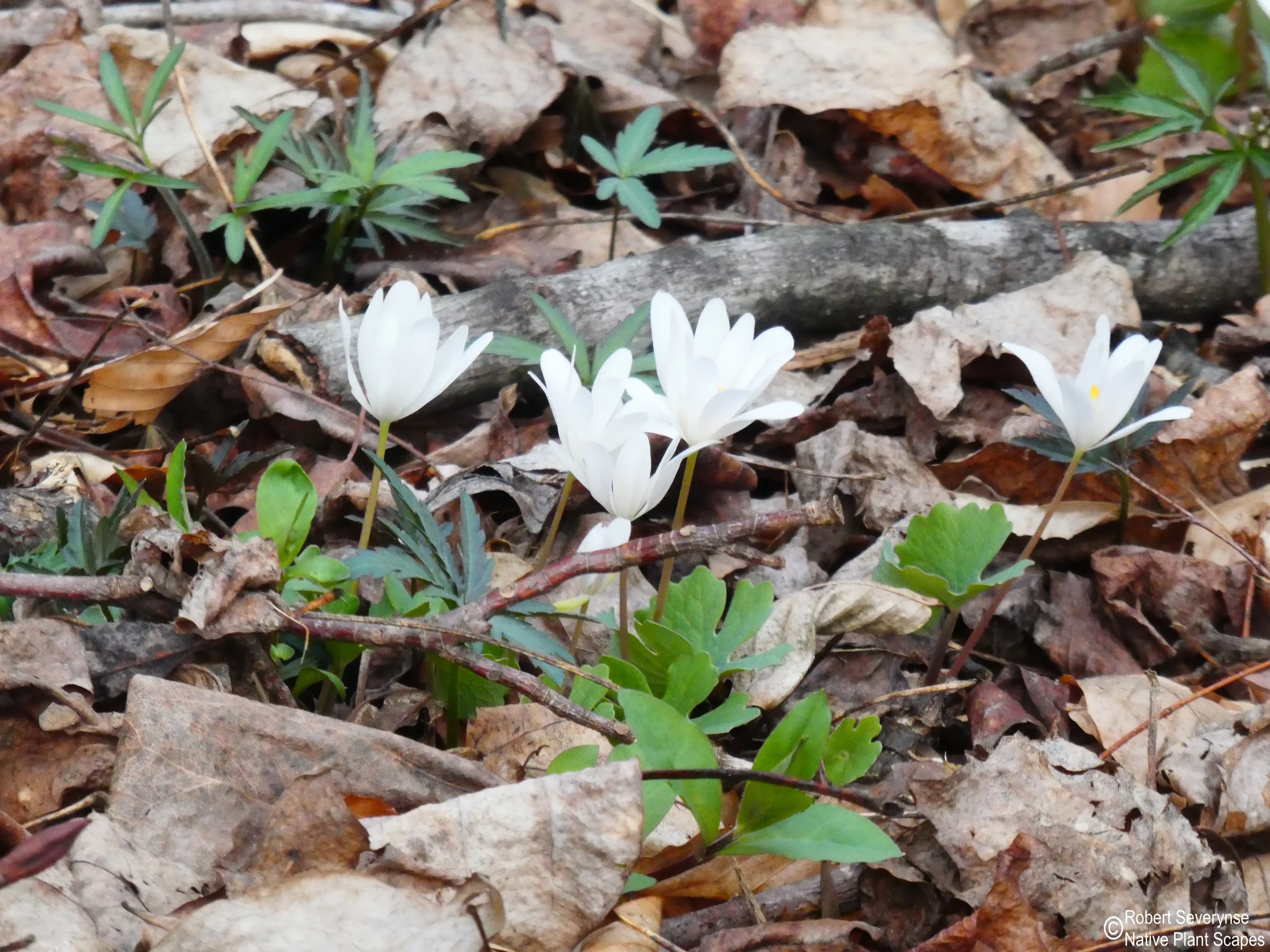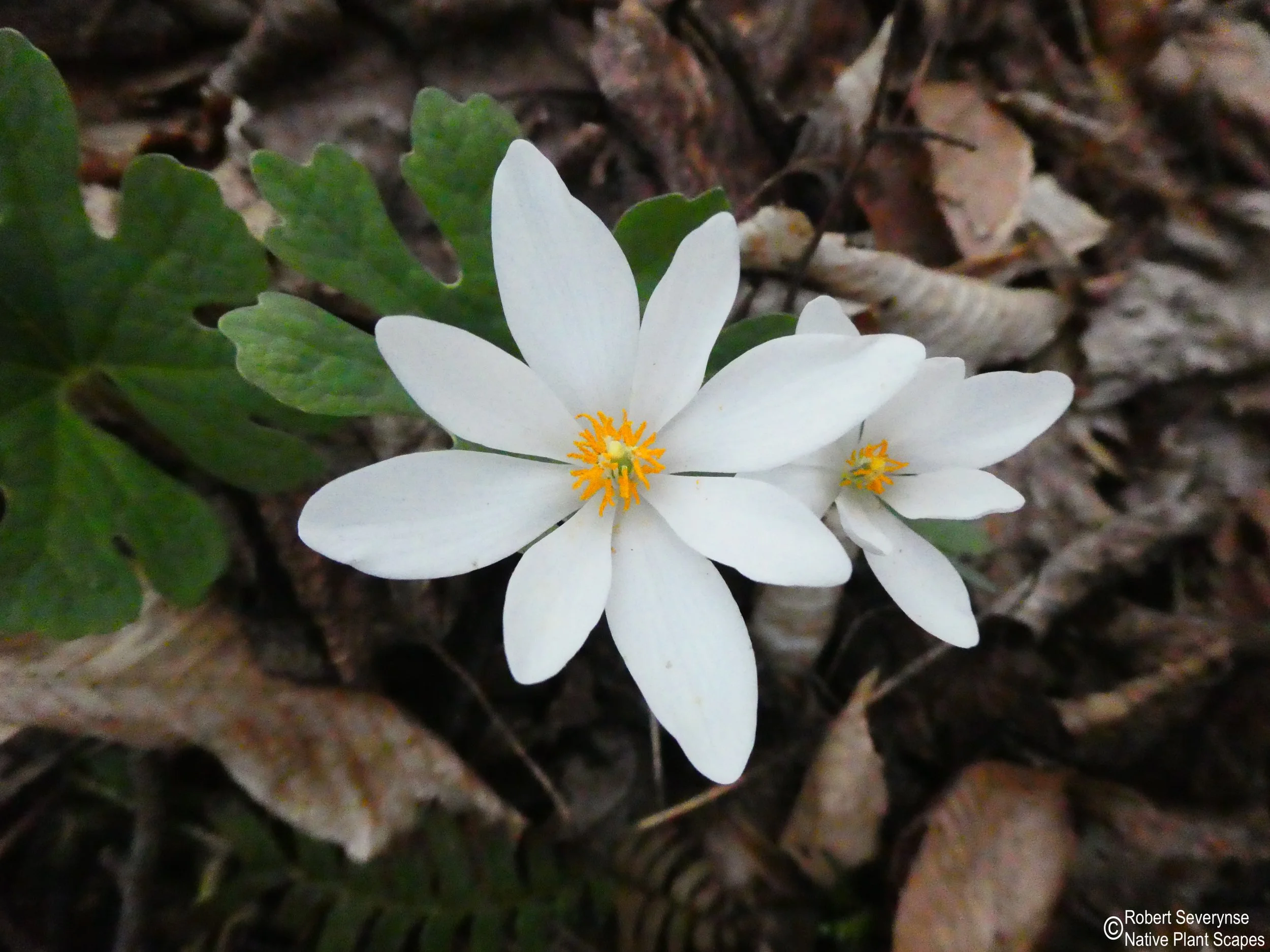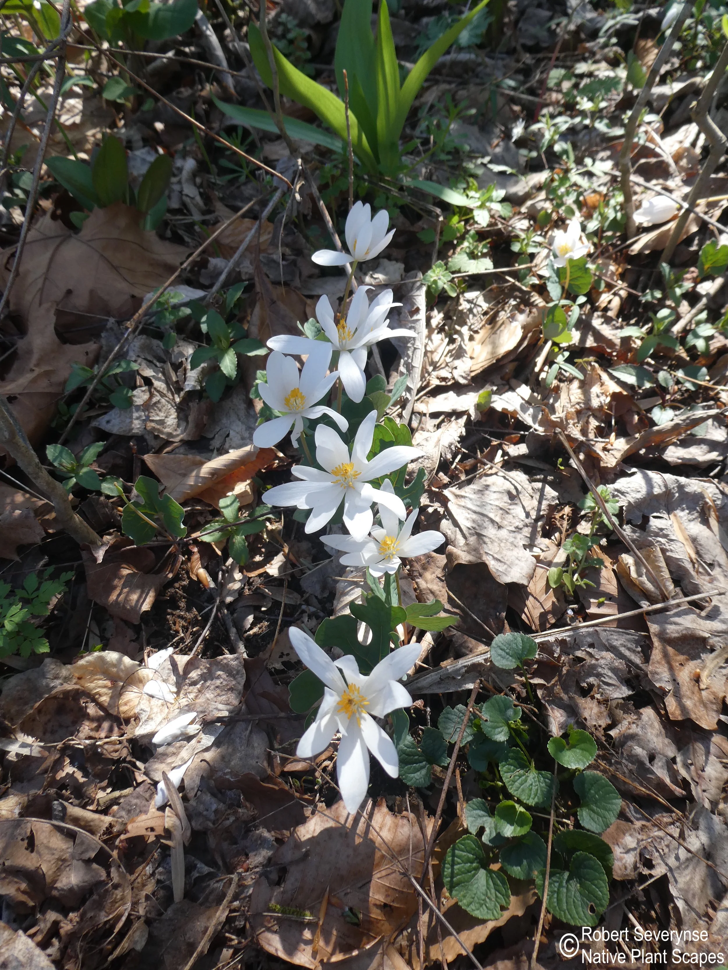 Bloodroot is a pollen source for various pollinators (mainly for bees). It is also a larval host for Southern Armyworm and Tufted Apple Bud moths. Ants eat elaiosomes. (small structures on seeds that contain lipids).