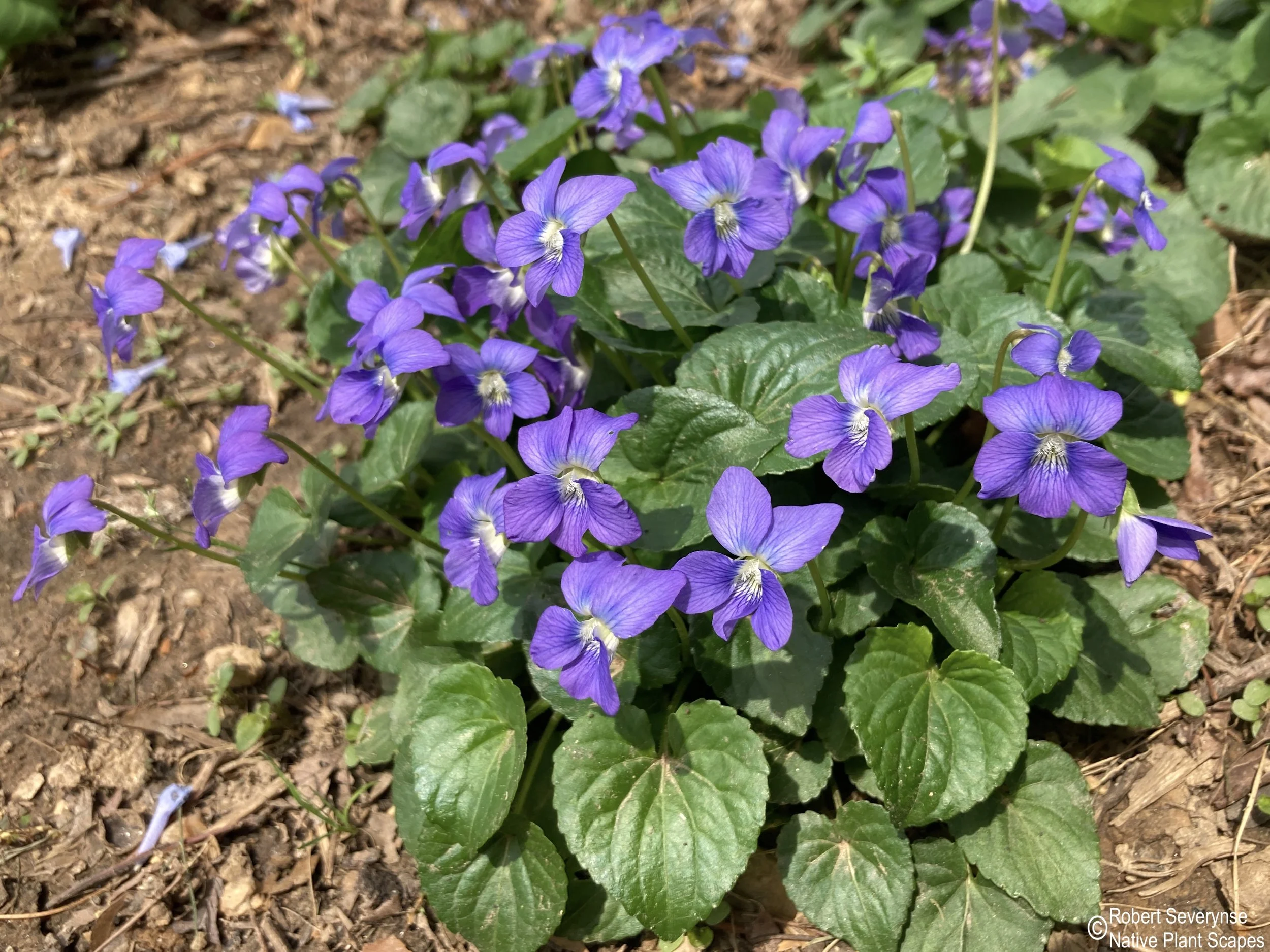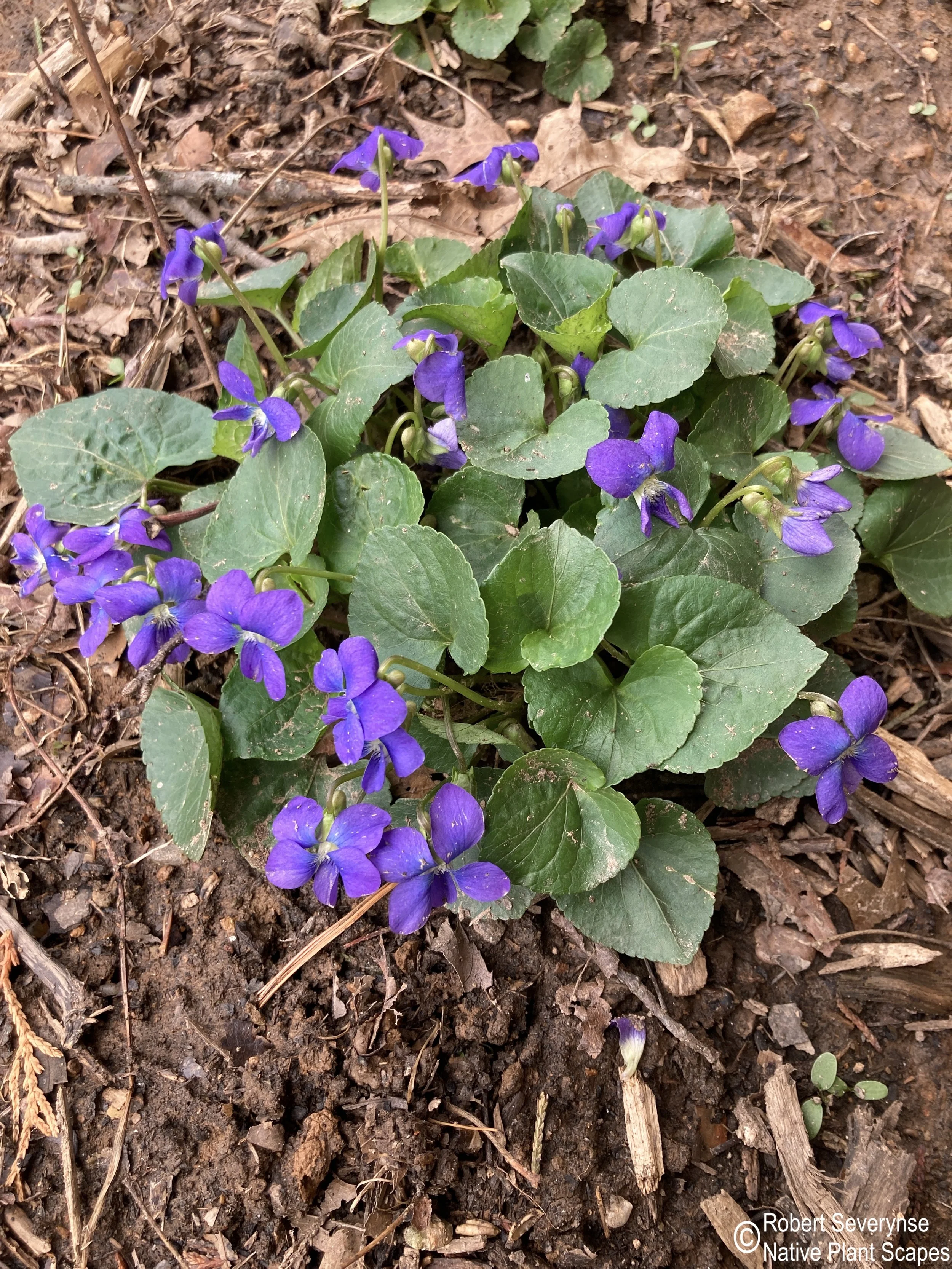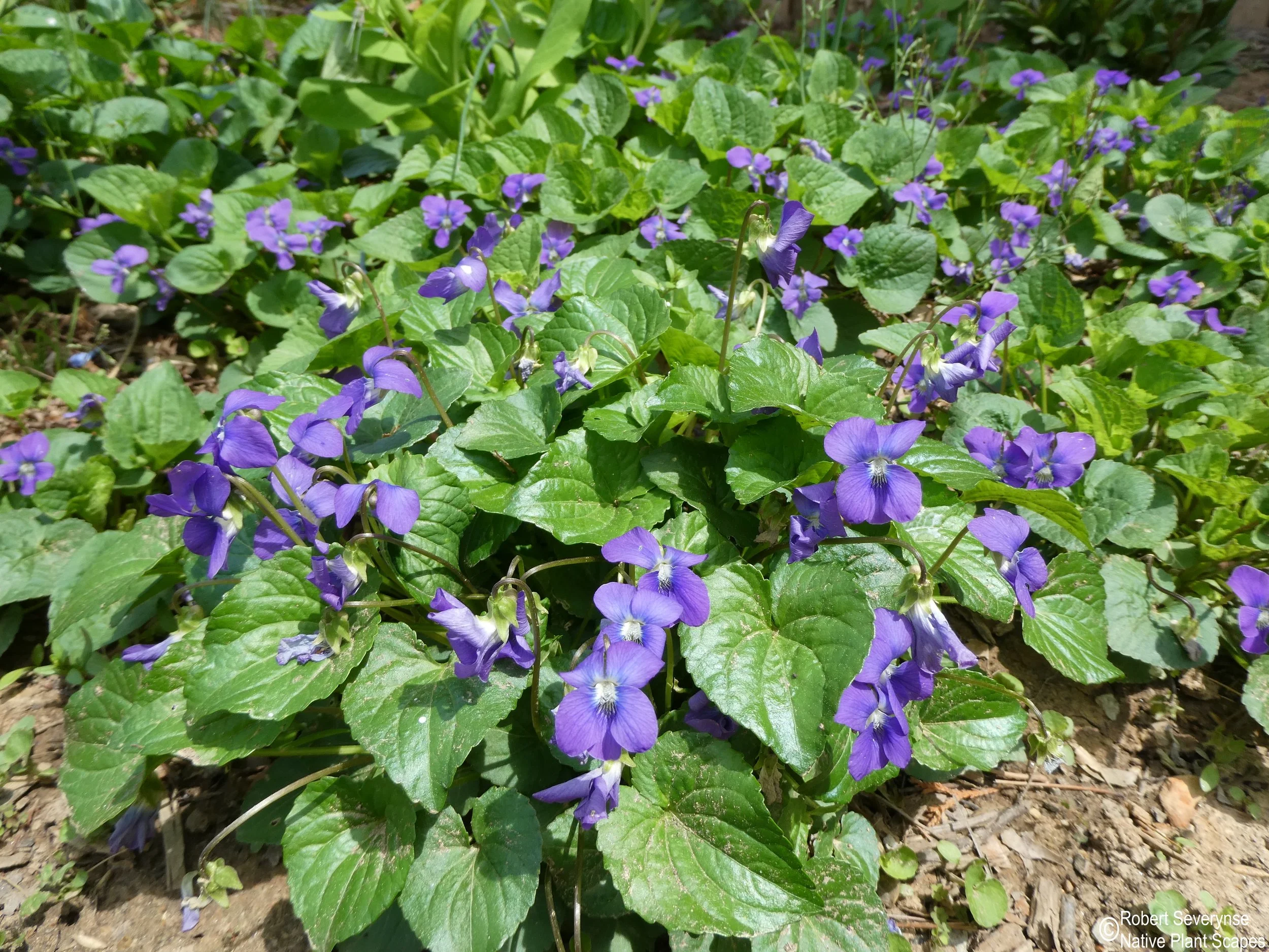 Common Blue Violet is a pollen and nectar source to many pollinating insects. It is also a larval host for 30 butterfly species, including Fritillaries, and certain bees. The seeds are eaten by birds and small mammals and rabbits may eat the foliage.